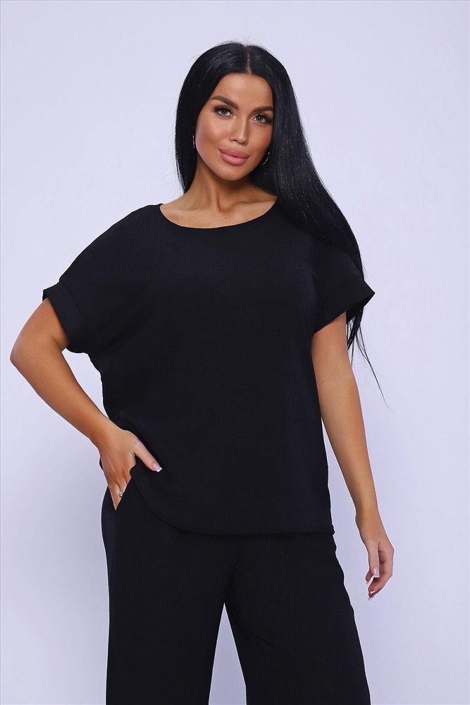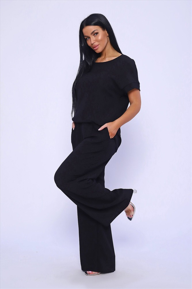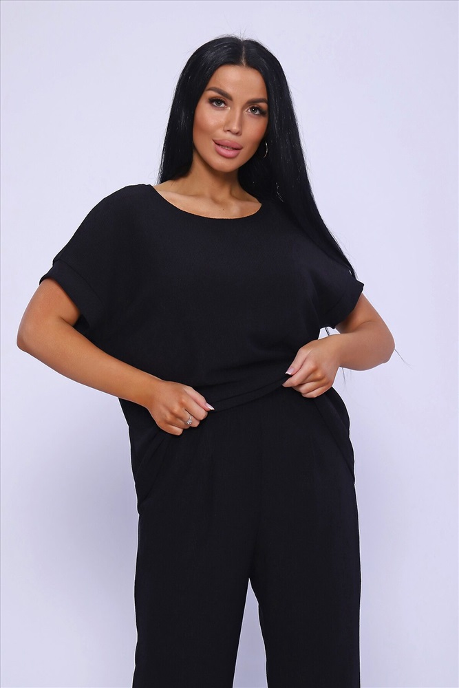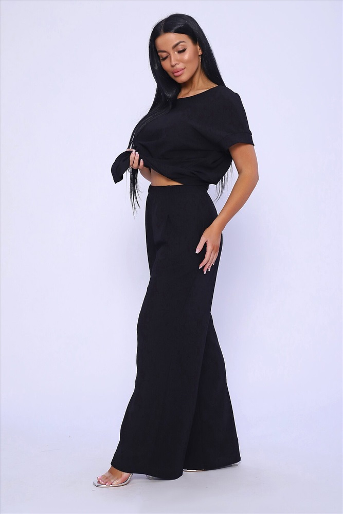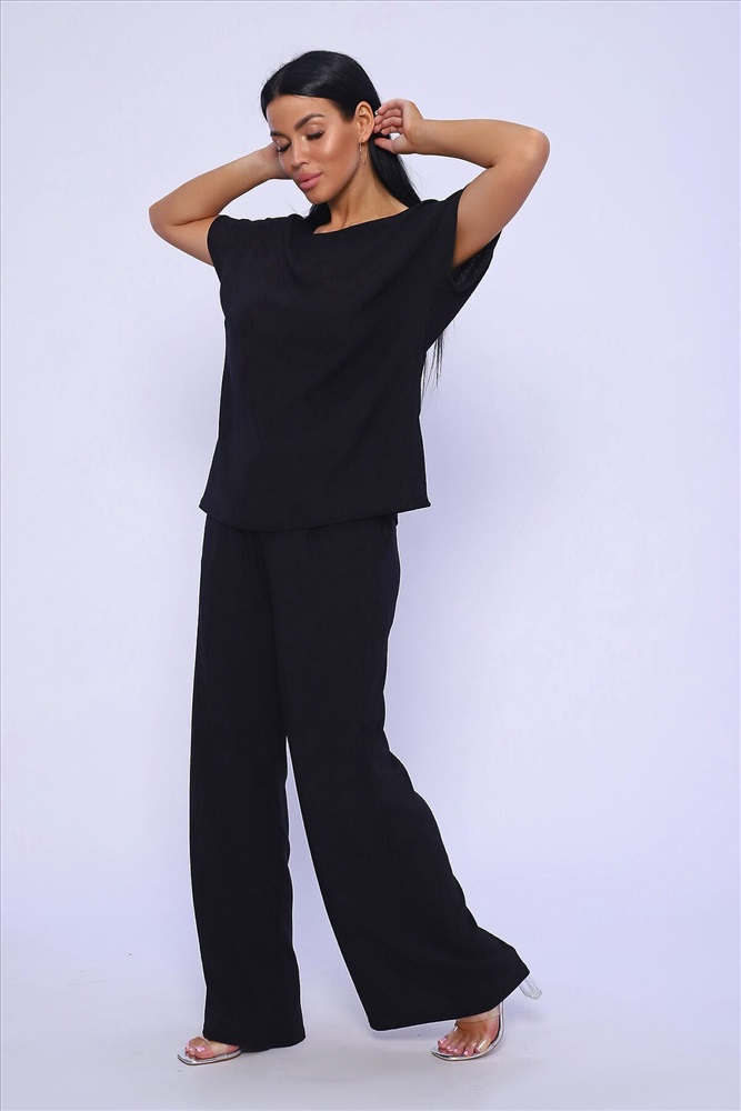 ID товара: 981993 Состав: 100% Полиэстер Сезон: Весна/Лето Длина: Полная Фасон: Свободный Рукав: короткие Крой брючин: Широкий Тип карманов: В шве Основная ткань: Полиэстер Стиль: классический Вид ткани: Жатка Страна бренда: Россия Страна производства: Россия Брюки палаццо и футболка со спущенной проймой и с круглым вырезом горловины из тонкого, струящего материала - жатка. Такой красивый модный костюм не оставит равнодушной ни одну модницу. Вещи представлены стандартных и больших размеров для дам с пышными формами. Расклешенные брючки с завышенной талией на резинке с карманами отличаются удобным кроем, они стандартной длины и превосходно садятся по фигуре женщин, визуально удлиняют ноги и придают силуэту идеальные очертания. Благодаря наличию нагрудных вытачек футболка идеально садиться по фигуре. Комментарии к товару