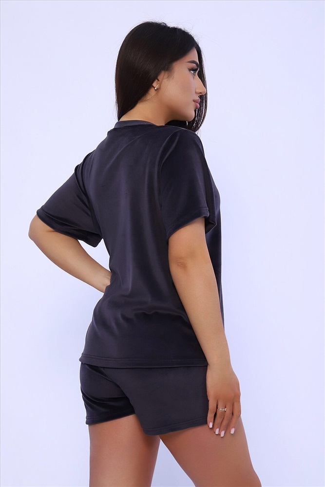 Костюм женский велюровый с шортами. Футболка с коротким рукавом, горловина обработана обтачкой, шорты на поясе. Костюм мягкий, приятный к телу, комфортный, идеально подойдет как для дома, так и для прогулок.