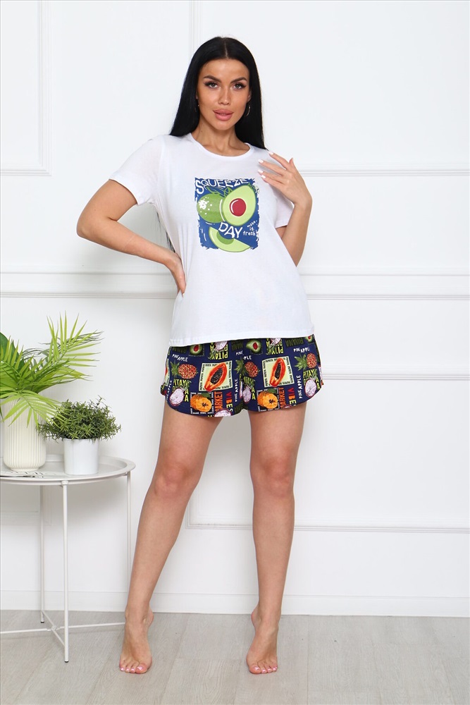 Производитель: НАТАЛИ ID товара: 1000460 Состав: 100% Хлопок Сезон: Весна/Лето Фасон: Свободный крой Рукав: Короткие Крой брючин: Прямой Рисунок: Фантазийный Тип карманов: Прорезные Вид ткани: Кулирка Страна бренда: Россия Страна производства: Россия