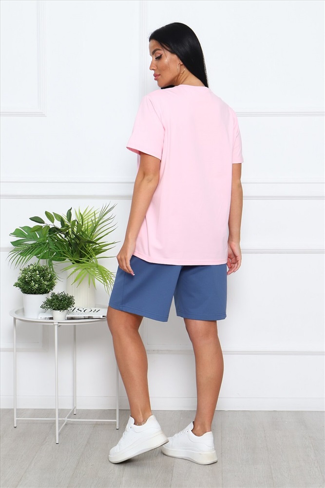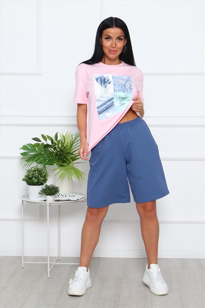ID товара: 1019245 Состав: 74% Хлопок, 21% Полиэстер, 5% Лайкра; 95% Хлопок, 5% Лайкра Сезон: Весна/Лето Фасон: Свободный крой Рукав: Короткие Крой брючин: Прямой Рисунок: Фантазийный Тип карманов: Втачные Вид ткани: Кулирка пенье, футер 2-х нитка Страна бренда: Россия Страна производства: Россия Костюм женский: шорты с боковыми карманами, на поясе и футболка классическая с короткими рукавами и стильным принтом на груди. Трикотаж отличного качества подарит комфорт и презентабельный вид. Комментарии к товару