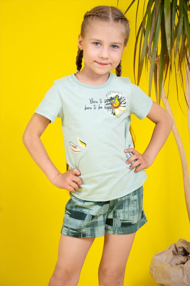 ID товара: 882119 Состав: 100% Хлопок Сезон: Весна/Лето Длина: Средняя Фасон: Прямой Рукав: короткие Основная ткань: Кулирка Стиль: Повседневный Страна бренда: Россия Страна производства: Россия Костюм детский с шортами. Футболка данной модели выполнена из трикотажного полотна кулирка, с втачным коротким рукавами, с принтом на полочке, горловина обработана окантовкой. Отлично подходит для прогулок и отдыха. Комментарии к товару