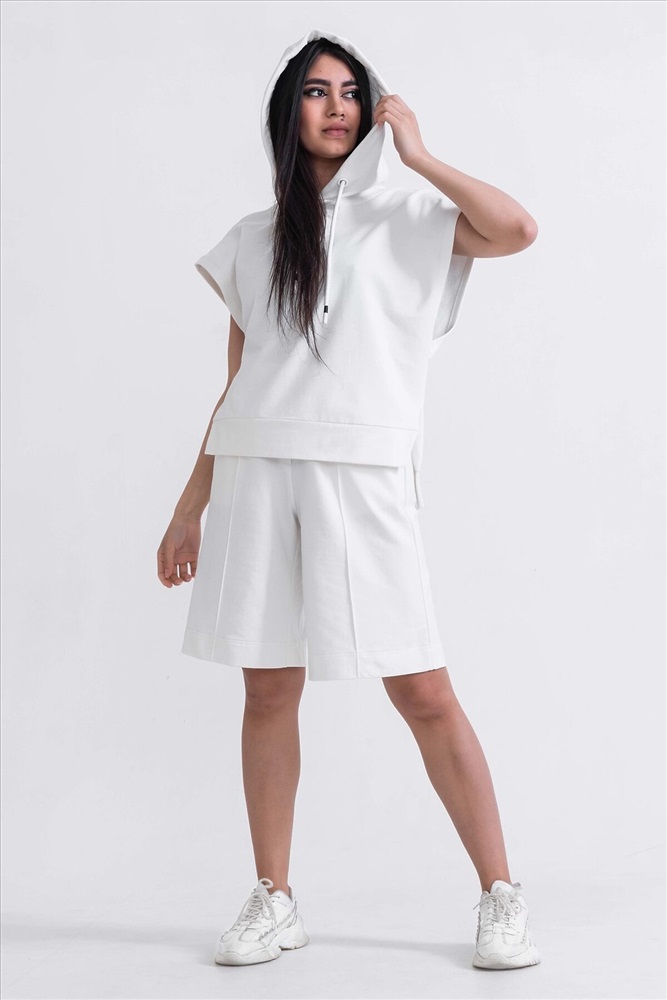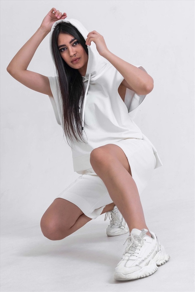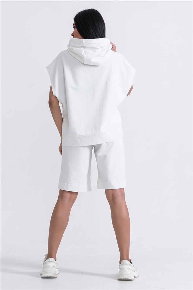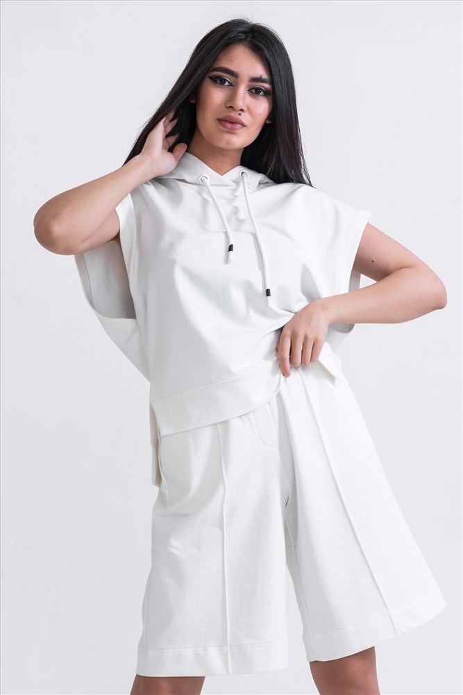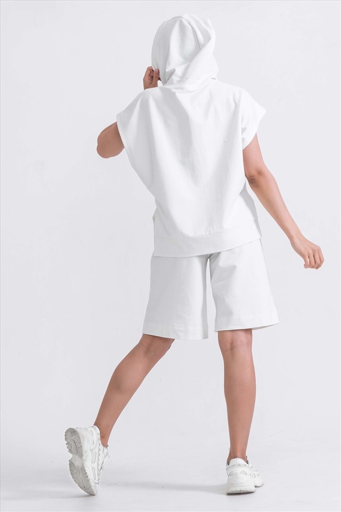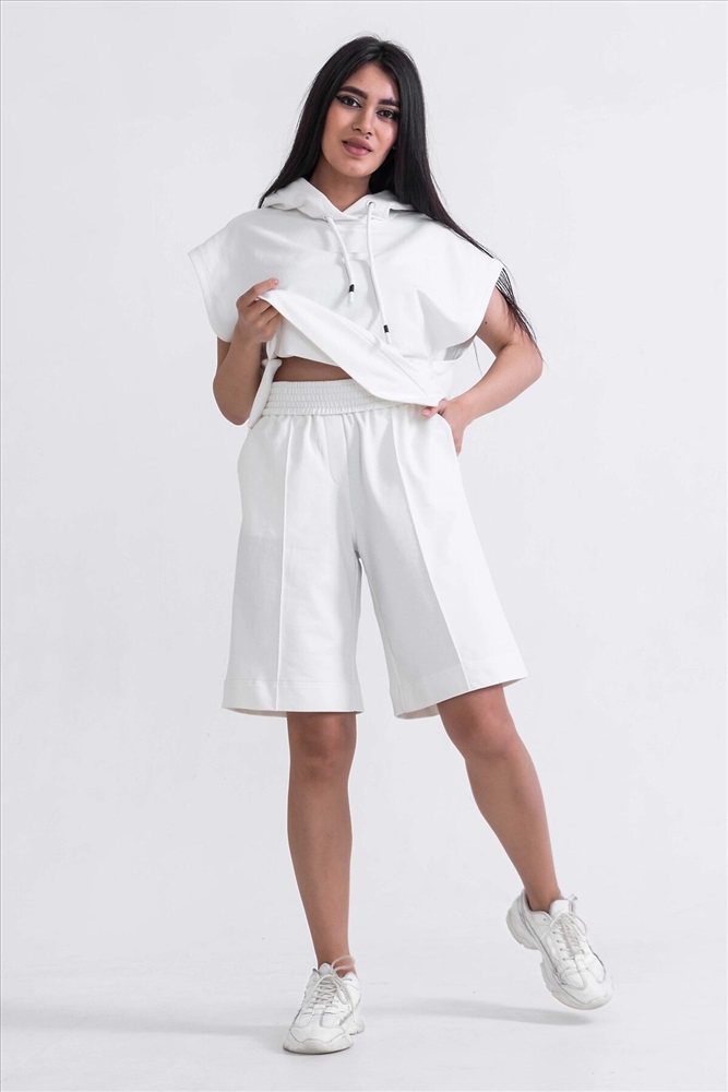 Страна производства: Россия Новый летний дизайнерский костюм в спортивном стиле. Костюм для базового гардероба стильной современной девушки. Отличное решение на каждый день, для прогулок, отдыха, путешествий, поездок на море и пикника, для шоппинга. Для любого возраста и телосложения. Комфортный и женственный фасон - укороченная жилетка-худи свободного кроя, шорты с карманами, удобным поясом-резинкой, подчеркивающим талию, высокой посадкой и прямого кроя. В капюшон жилетки вставлен шнурок, который придает дополнительную стильность костюму. Ткань легко гладится, приятная на ощупь. Во время носки костюм сохраняет форму, не мнется. Трикотажный костюм это удобно и практично. Вам не надо думать, что надеть, у Вас всегда есть в шкафу уже готовый модный образ. Шорты и жилетку-худи можно носить по отдельности. Жилетку-худи рекомендуем носить с топом