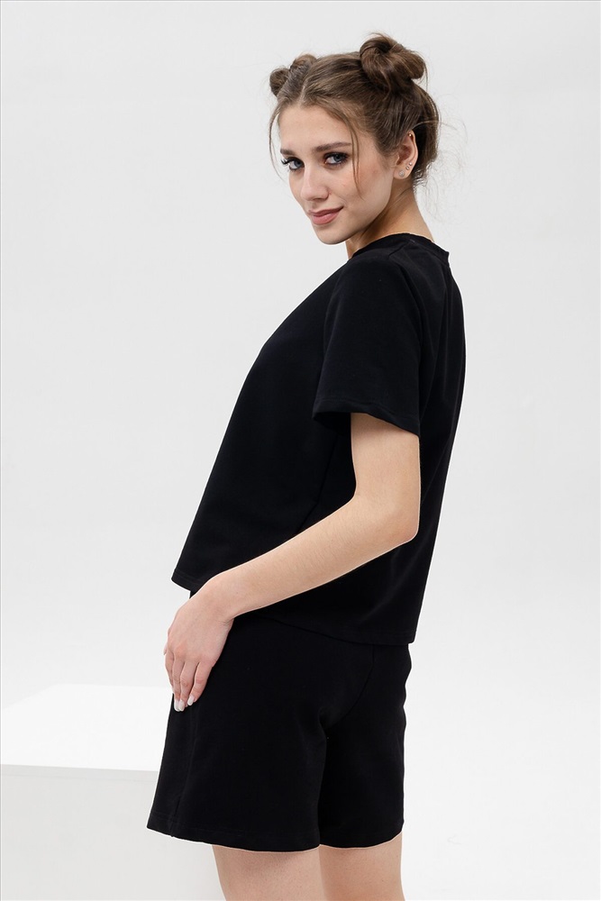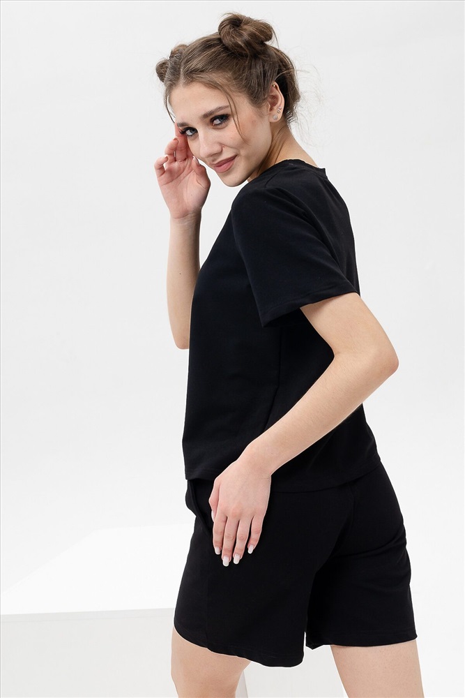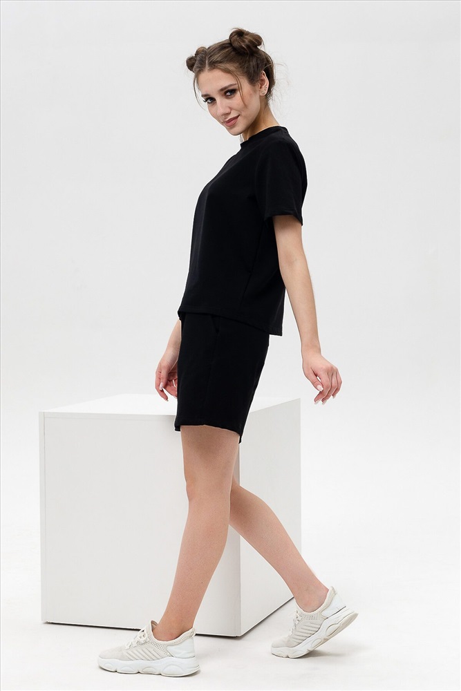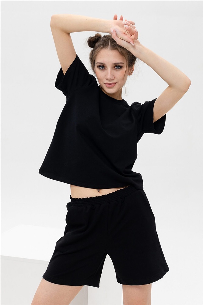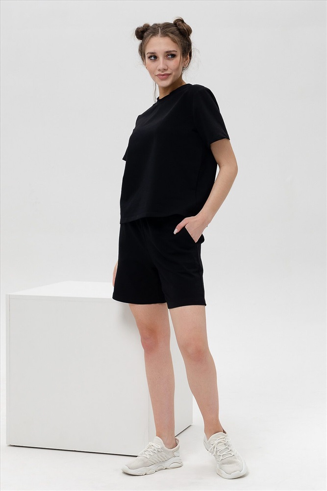 СПЕЦЗАКАЗ Женский костюм из футболки с шортами. Верх: однотонная футболка с коротким рукавом. Комфортная футболка для дома и занятий спортом. Актуальный крой и трендовые расцветки модели делают её универсальной для летнего гардероба. Низ: Шорты свободного покроя с карманами. Костюм спортивный в приятных модных расцветках. Комплект будет идеально смотреться как домашний и как спортивный на летний сезон. Костюм сшит из футера. Это износостойкая, приятная на ощупь, мягкая ткань из натурального хлопка. За ней легко ухаживать.