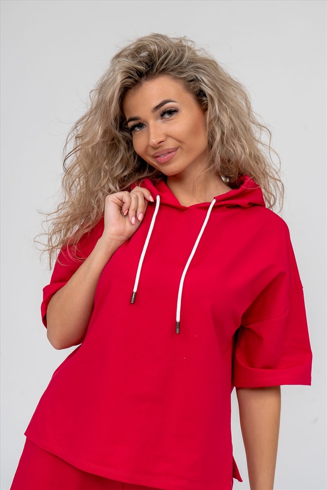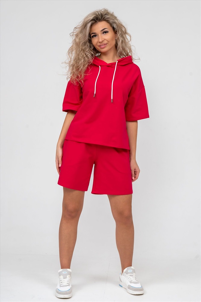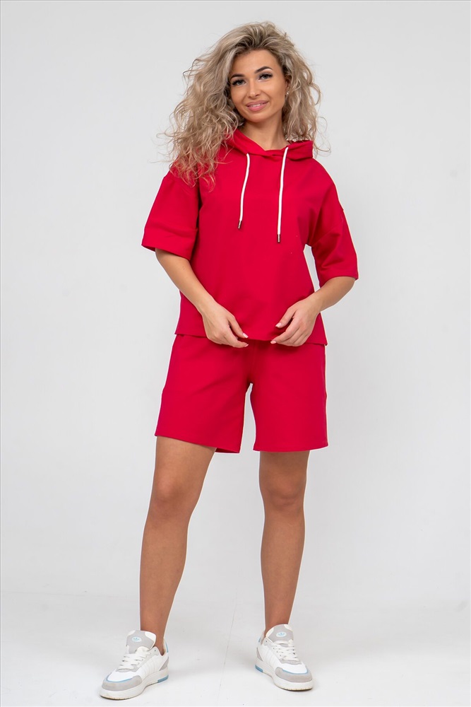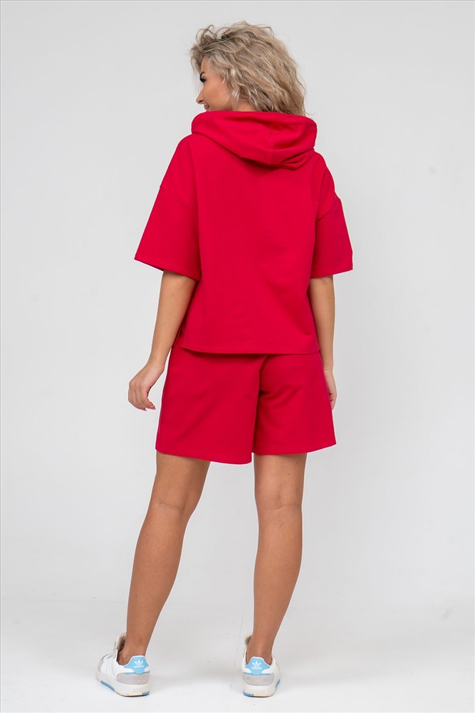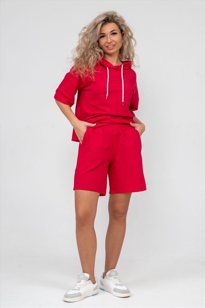 ID товара: 892381 Состав: 72% Хлопок, 20% Полиэстер, 8% Лайкра Сезон: Весна/Лето Длина: Средняя Фасон: Прямой Рукав: короткие Крой брючин: Прямой Тип карманов: В шве Декоративные элементы: С капюшоном Основная ткань: Хлопок Стиль: Спортивный Вид ткани: Футер 2-х нитка Страна бренда: Россия Страна производства: Россия Женский костюм 2-ка выполнен из футера высокого качества с хлопком и небольшим добавлением полиэстера и лайкры, что позволяет изделию не скатываться и оставлять идеальный внешний вид на долгое время. Костюм состоит из толстовки и шорт. Толстовка с капюшоном и шнурком. Линия плеча спущена, рукав укороченный, по бокам имеются небольшие разрезы. Свободный крой прекрасно будет смотреться на дамах с любыми формами. Костюм такого плана представлен в широкой размерной сетке, что позволяет выбрать его как девушке, так и женщине. Однотонный костюм модных расцветок будет удачным выбором для поездок в отпуск, на пикник, для активного отдыха и прогулок по городу. Будет гармонично сочетаться как с кроссовками, так и с туфлями, балетками или босоножками. Используя эту модель в качестве домашнего костюма, Вы поймёте, что это именно тот самый идеальный вариант, в котором вы будете себя чувствовать удобно, комфортно и современно. Костюм с шортами - это настоящая находка для тех, кто ценит свою индивидуальность! Ориентируясь по таблице замеров, обратите внимание, что замеры длины рукава проводились от точки основания шеи. Комментарии к товару