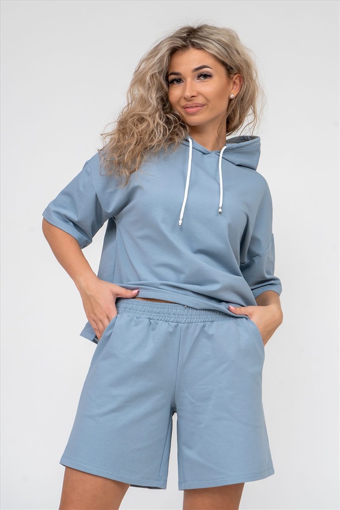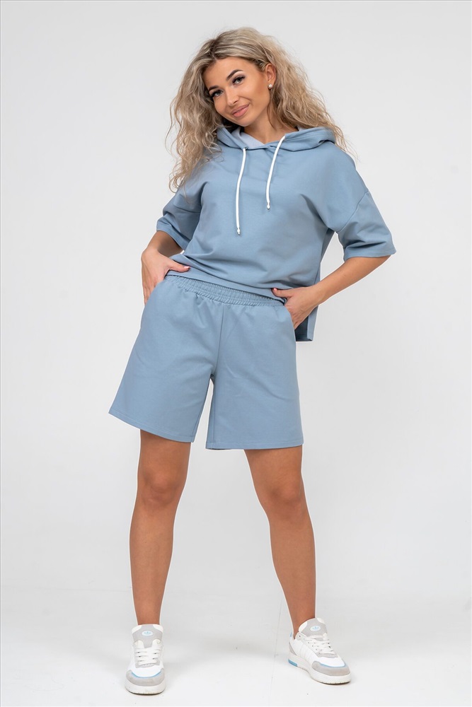 ID товара: 892383 Состав: 72% Хлопок, 20% Полиэстер, 8% Лайкра Сезон: Весна/Лето Длина: Средняя Фасон: Свободный крой Рукав: короткие Крой брючин: Прямой Тип карманов: В шве Декоративные элементы: С капюшоном Основная ткань: Хлопок Стиль: Спорт-шик Вид ткани: Футер 2-х нитка Страна бренда: Россия Страна производства: Россия Женский костюм 2-ка выполнен из футера высокого качества с хлопком и небольшим добавлением полиэстера и лайкры, что позволяет изделию не скатываться и оставлять идеальный внешний вид на долгое время. Костюм состоит из толстовки и шорт. Толстовка с капюшоном и шнурком. Линия плеча спущена, рукав укороченный, по бокам имеются небольшие разрезы. Свободный крой прекрасно будет смотреться на дамах с любыми формами. Костюм такого плана представлен в широкой размерной сетке, что позволяет выбрать его как девушке, так и женщине. Однотонный костюм модных расцветок будет удачным выбором для поездок в отпуск, на пикник, для активного отдыха и прогулок по городу. Будет гармонично сочетаться как с кроссовками, так и с туфлями, балетками или босоножками. Используя эту модель в качестве домашнего костюма, Вы поймёте, что это именно тот самый идеальный вариант, в котором вы будете себя чувствовать удобно, комфортно и современно. Костюм с шортами - это настоящая находка для тех, кто ценит свою индивидуальность! Ориентируясь по таблице замеров, обратите внимание, что замеры длины рукава проводились от точки основания шеи. Комментарии к товару