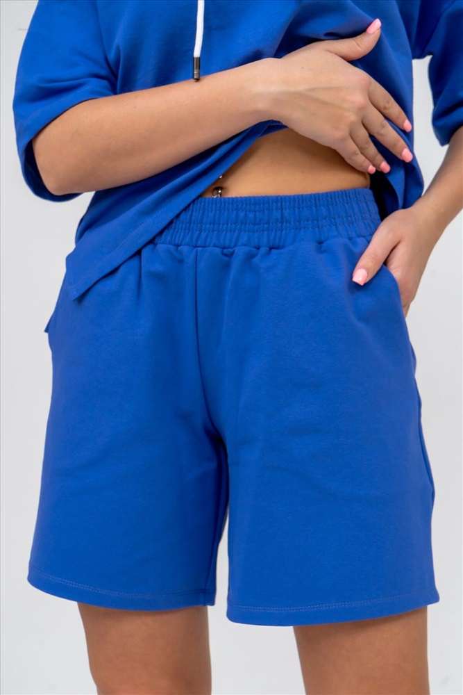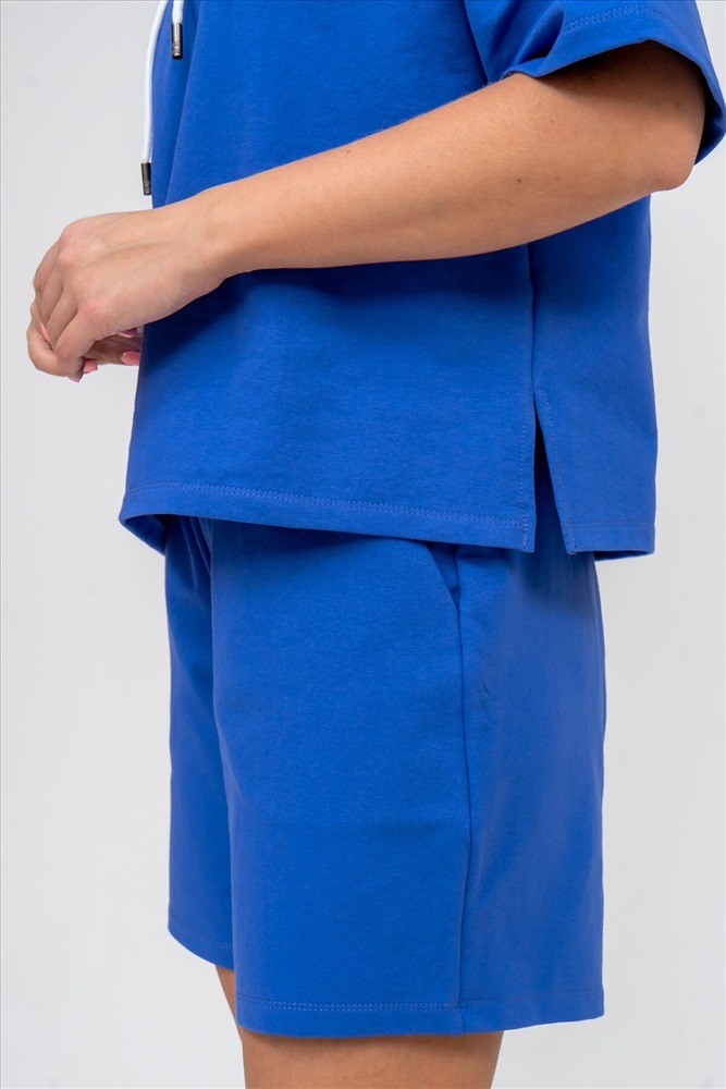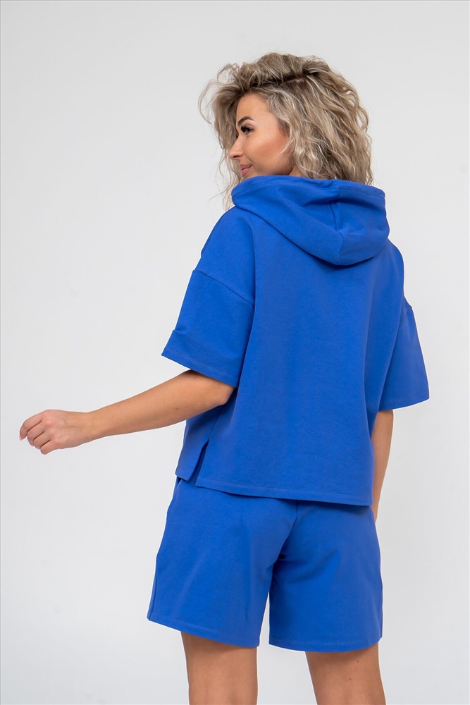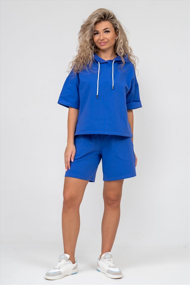 Женский костюм 2-ка выполнен из футера высокого качества с хлопком и небольшим добавлением полиэстера и лайкры, что позволяет изделию не скатываться и оставлять идеальный внешний вид на долгое время. Костюм состоит из толстовки и шорт. Толстовка с капюшоном и шнурком. Линия плеча спущена, рукав укороченный, по бокам имеются небольшие разрезы. Свободный крой прекрасно будет смотреться на дамах с любыми формами. Костюм такого плана представлен в широкой размерной сетке, что позволяет выбрать его как девушке, так и женщине. Однотонный костюм модных расцветок будет удачным выбором для поездок в отпуск, на пикник, для активного отдыха и прогулок по городу. Будет гармонично сочетаться как с кроссовками, так и с туфлями, балетками или босоножками. Используя эту модель в качестве домашнего костюма, Вы поймёте, что это именно тот самый идеальный вариант, в котором вы будете себя чувствовать удобно, комфортно и современно. Костюм с шортами - это настоящая находка для тех, кто ценит свою индивидуальность! Ориентируясь по таблице замеров, обратите внимание, что замеры длины рукава проводились от точки основания шеи.