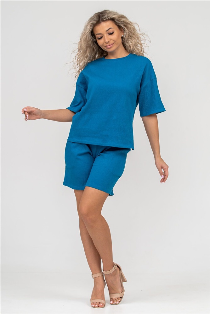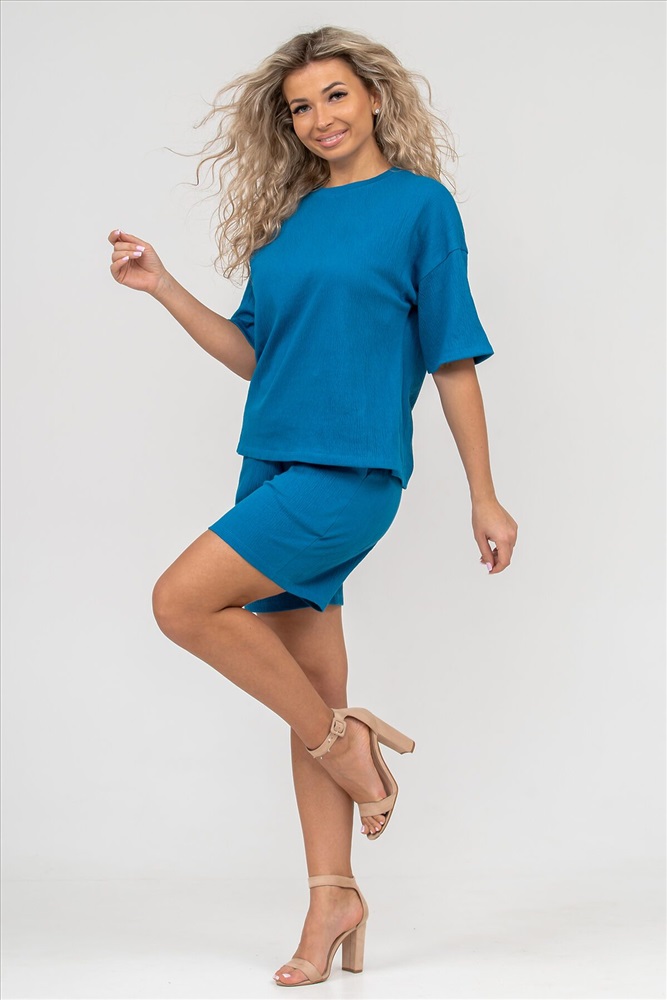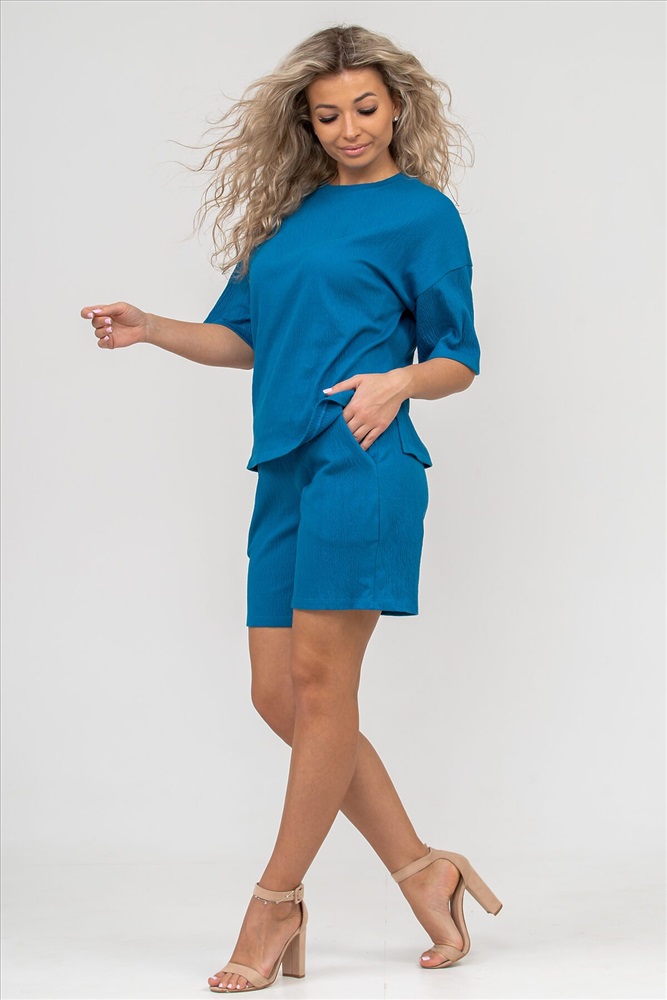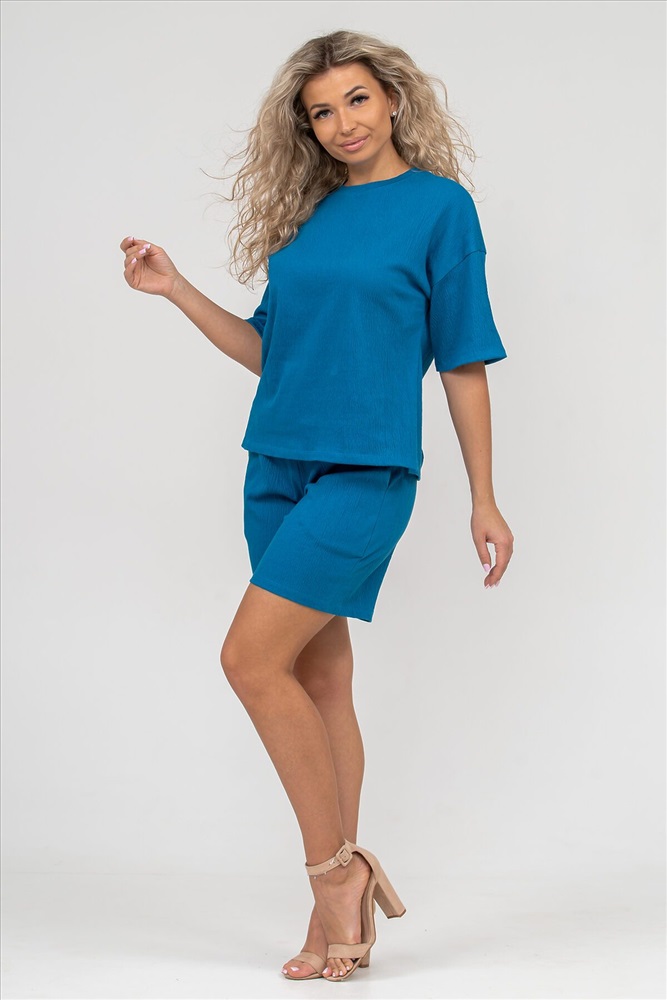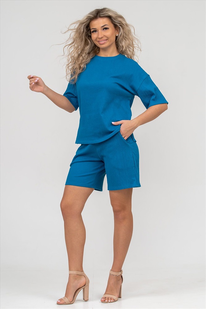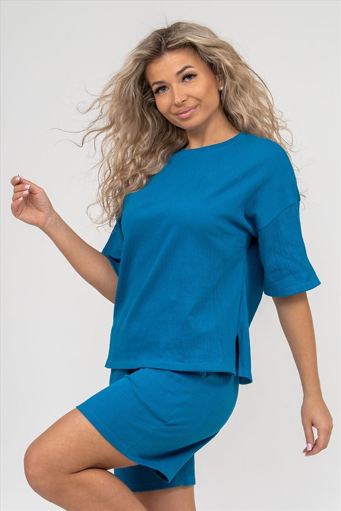 Костюм - футболка и шорты, выполнен из кулирки гипе жатка компакт. Жатка - это ткань с мятой структурой, декоративными заломами и складками. Имеет много положительных качеств: хорошо тянется, упругая, красивая текстура, неприхотливая в уходе, прочная, износостойкая, не мнётся, не нуждается в глажке и приятная к телу. Костюм отлично подойдет для дома, прогулок, походов на пляж или в спортзал. Этот яркий и модный костюм прекрасно сочетается со стильными образами на любой вкус. Он легкий и свободный, что делает его идеальным для лета и весны. Двойка из трикотажа подойдет для дома, фитнеса, танцев или пляжа. Отлично подойдёт для тех, кто любит яркие и популярные новинки. Наши вещи идеально подходят для пляжного отдыха на море, даче или путешествий и будут выглядеть прекрасно в любой ситуации. Костюм подходит для высоких и невысоких женщин, а также для полных и худых девушек. Это базовая вещь в гардеробе каждой женщины, которая ценит качество и стиль. Используйте его как спортивную одежду для занятий фитнесом или другими видами спорта. Он также прекрасно подходит для дачных прогулок и весенних поездок. Костюм - это отличный выбор для тех, кто ищет красивый и удобный наряд. Наш комплект из футболки и шорт - молодежный и стильный выбор для каждой женщины, девушки и подростка. Он прекрасно сочетается с разной обувью и аксессуарами, что делает его универсальным и практичным. Ориентируясь по таблице замеров, обратите внимание, что замеры длины рукава проводились от точки основания шеи.