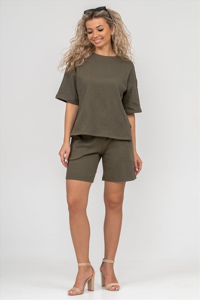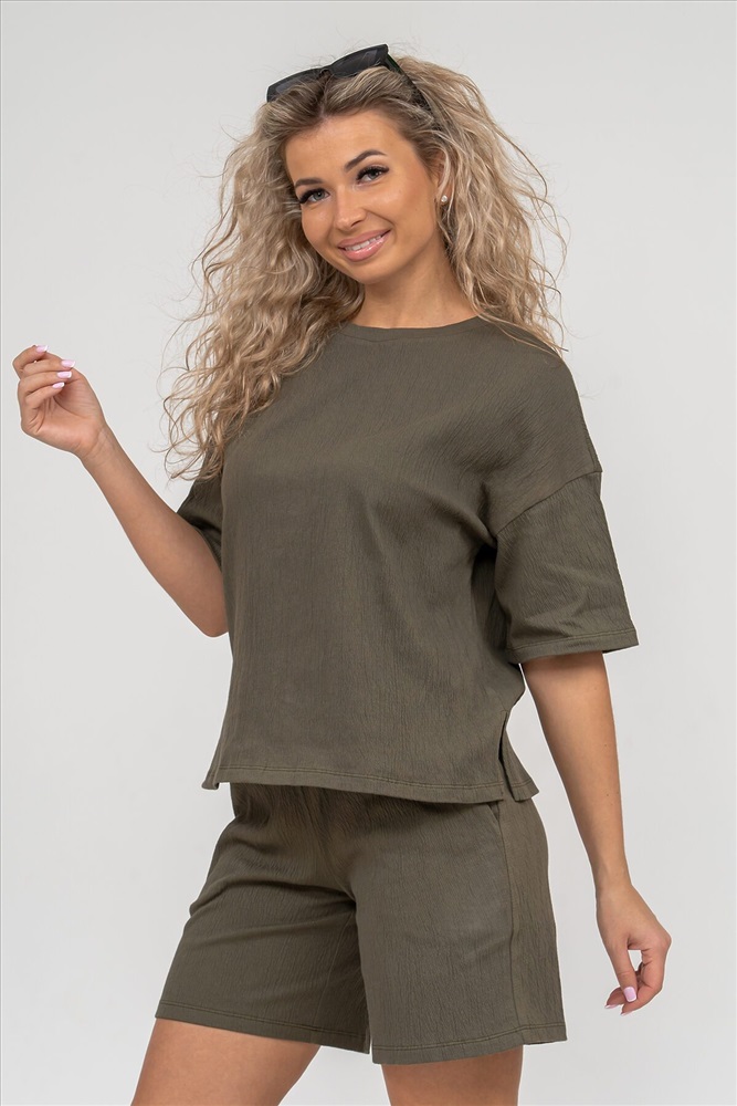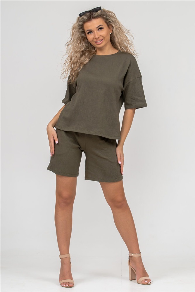 Страна производства: Россия Костюм - футболка и шорты, выполнен из кулирки гипе жатка компакт. Жатка - это ткань с мятой структурой, декоративными заломами и складками. Имеет много положительных качеств: хорошо тянется, упругая, красивая текстура, неприхотливая в уходе, прочная, износостойкая, не мнётся, не нуждается в глажке и приятная к телу. Костюм отлично подойдет для дома, прогулок, походов на пляж или в спортзал. Этот яркий и модный костюм прекрасно сочетается со стильными образами на любой вкус. Он легкий и свободный, что делает его идеальным для лета и весны. Двойка из трикотажа подойдет для дома, фитнеса, танцев или пляжа. Отлично подойдёт для тех, кто любит яркие и популярные новинки. Наши вещи идеально подходят для пляжного отдыха на море, даче или путешествий и будут выглядеть прекрасно в любой ситуации. Костюм подходит для высоких и невысоких женщин, а также для полных и худых девушек. Это базовая вещь в гардеробе каждой женщины, которая ценит качество и стиль. Используйте его как спортивную одежду для занятий фитнесом или другими видами спорта. Он также прекрасно подходит для дачных прогулок и весенних поездок. Костюм - это отличный выбор для тех, кто ищет красивый и удобный наряд. Наш комплект из футболки и шорт - молодежный и стильный выбор для каждой женщины, девушки и подростка. Он прекрасно сочетается с разной обувью и аксессуарами, что делает его универсальным и практичным. Ориентируясь по таблице замеров, обратите внимание, что замеры длины рукава проводились от точки основания шеи.