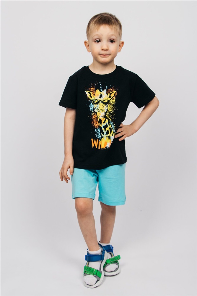 Страна производства: Россия Комплект для мальчика, состоящий из футболки и шорт выполнен из 100% хлопка. Футболка для мальчика прямого силуэта, с втачным коротким рукавом. Благодаря эластичной горловине, выполненной из рибаны. футболку удобно снимать и надевать. На полочке принт Шелкография. Надпись переводится как Дикая жизнь. Шорты для мальчика прямого силуэта.