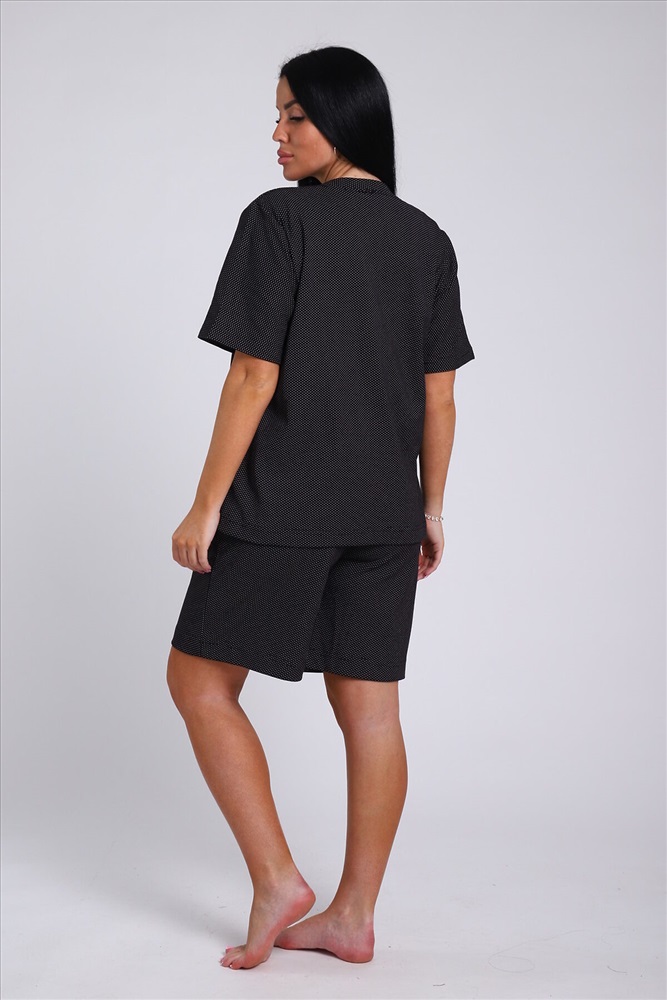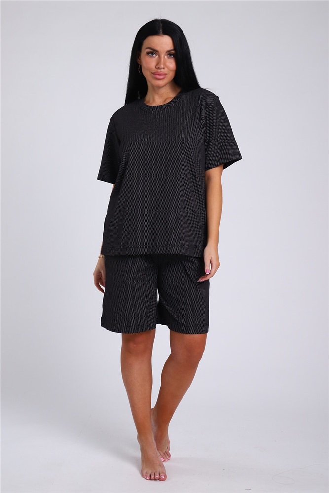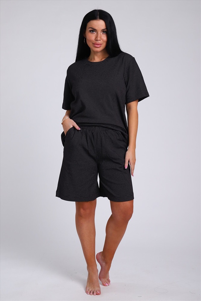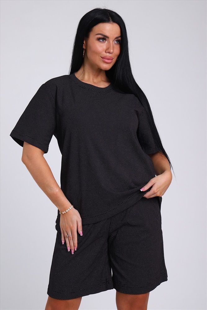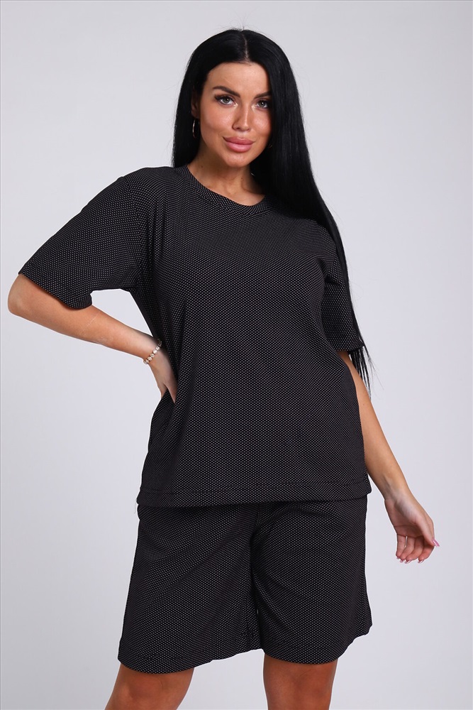 ID товара: 978285 Состав: 85% Хлопок; 15% Лайкра Сезон: Весна/Лето Длина: Средняя Фасон: Свободный Рукав: короткие Крой брючин: Прямой Основная ткань: Хлопок Стиль: повседневный Вид ткани: Футер с лайкрой 2-х нитка Страна бренда: Россия Страна производства: Россия Женский костюм с удлиненными шортами - идеальный выбор для тех, кто ценит комфорт и стиль. Домашний комплект состоит из базовой oversize футболки и широких шорт с карманами. Изготовлен из мягкого футера двунитки без начеса, который обеспечивает отличную воздухопроницаемость и комфорт в жаркую погоду. Хлопок в составе ткани гарантирует ее прочность и долговечность, а лайкра обеспечивает эластичность и удобство при движении. Большие размеры от 46 до 56 позволяют выбрать идеальный вариант для любого типа фигуры. Благодаря широкой резинке оверсайз шорт и свободному крою футболки этот комплект домашней одежды может стать прекрасным выбором для беременных женщин, так как не сковывает движения, а мягкий трикотаж не вызывает дискомфорта. Летний дачный комплект двойка из футболки и шорт oversize - идеальный вариант для прогулок, спорта и отдыха. Спортивный костюм также подойдет для дома, сна и путешествий. Повседневный домашний костюм с ярким принтом в стиле спорт шик станет универсальным подарком на любой праздник маме, бабушке или девушке. Комментарии к товару