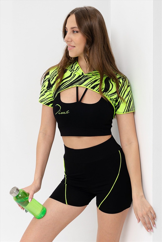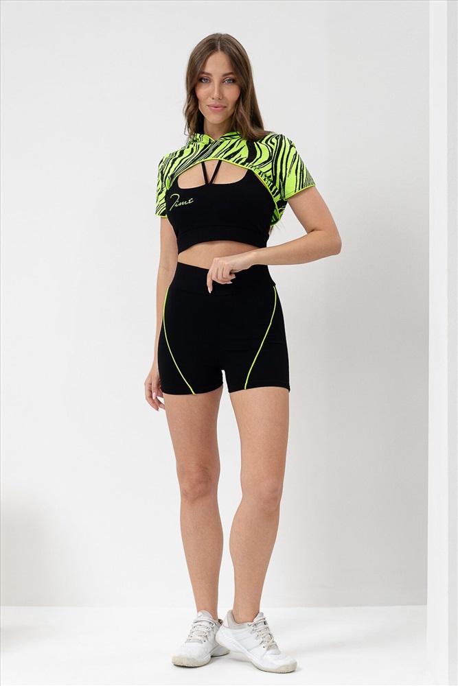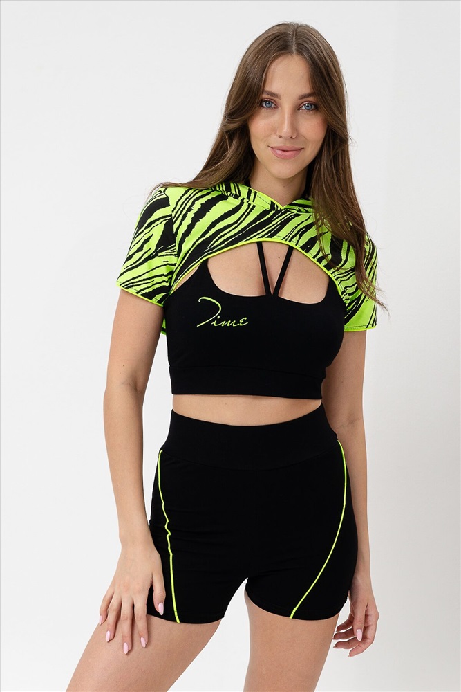 Страна производства: Россия Костюм женский спортивный - тройка, состоит из худи с капюшоном, укороченного топа на тонких бретелях и шорт с широкой эластичной резинкой в поясе.