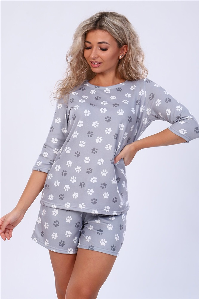 ID товара: 872724 Состав: Полиэстер 80%, Вискоза 20% Сезон: Демисезон Длина: Средняя Фасон: Прямой Рукав: До локтя Крой брючин: Прямой Основная ткань: Термальсофт Стиль: Повседневный Страна бренда: Россия Страна производства: Россия Женский домашний костюм-пижама с шортиками и лонгсливом из ткани нового поколения - термальсофта. Лонгслив свободного силуэта с рукавом длиной 3/4. Шорты классические без бокового шва, на широкой резинке, украшенной декоративным атласным бантиком по центру. Расширяются от верхней части бедра. Прекрасно подойдет беременным. Ткань костюма очень мягкая и нежная на ощупь, тонкая, но очень теплая, напоминает тонкую ангору, имеет высокие показатели эластичности, прекрасно сохраняет форму изделия. По ткани милый рисунок в виле лапок. Костюм очень комфортный и приятный к телу. Отличный подарок любимым по любому поводу! Комментарии к товару