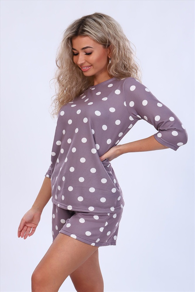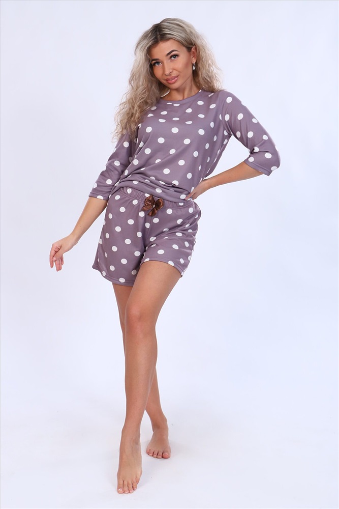 ID товара: 872602 Состав: Полиэстер 80%, Вискоза 20% Сезон: Демисезон Длина: Средняя Фасон: Прямой Рукав: 3/4 Крой брючин: Прямой Рисунок: Горох Основная ткань: Термальсофт Стиль: Повседневный Страна бренда: Россия Страна производства: Россия Женский домашний костюм-пижама с шортиками и лонгсливом из ткани нового поколения - термальсофта. Лонгслив свободного силуэта с рукавом длиной 3/4. Шорты классические без бокового шва, на широкой резинке, украшенной декоративным атласным бантиком по центру. Расширяются от верхней части бедра. Прекрасно подойдет беременным. Ткань костюма очень мягкая и нежная на ощупь, тонкая, но очень теплая, напоминает тонкую ангору, имеет высокие показатели эластичности, прекрасно сохраняет форму изделия. По ткани милый рисунок в виде крупного гороха. Костюм очень комфортный и приятный к телу. Отличный подарок любимым по любому поводу! Комментарии к товару