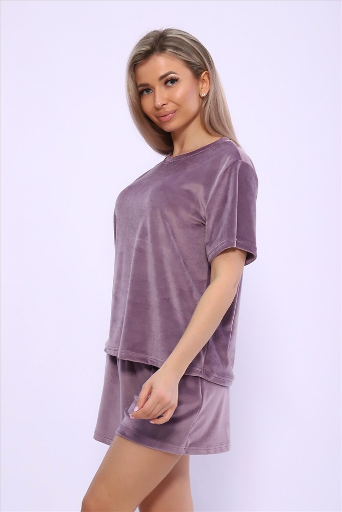 Страна производства: Россия Костюм повседневный с шортами из мягкого велюра. В комплект входят: футболка с коротким рукавом с округлым вырезом горловины и шорты с карманами и поясом на резинке. Удобный велюровый костюм имеет свободный покрой, что делает его универсальной одеждой, которая подойдет на любую фигуру. Он не сковывает движения, скрывает недостатки и подчеркивает достоинства фигуры. Удобные шорты имеют комфортную посадку, резинка не давит, не скручивается, не перетягивает талию. Костюм универсальный, его приятно носить дома и на улице.