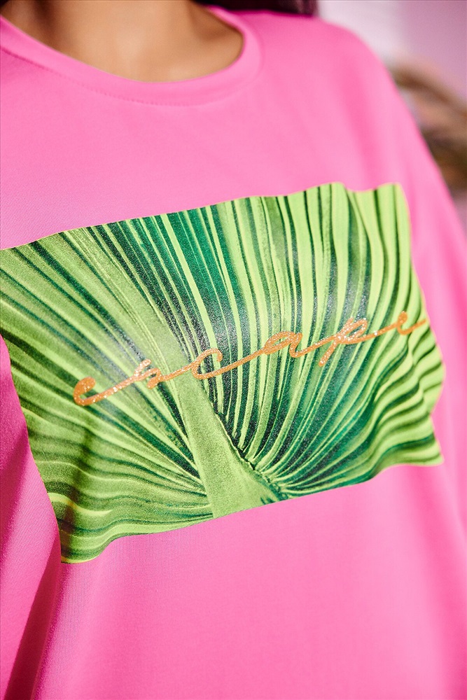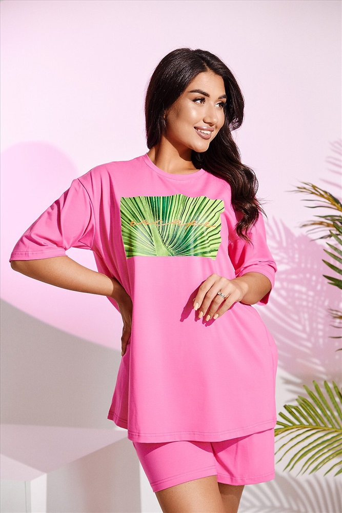Страна производства: Россия Костюм женский - свободные шорты с футболкой выполнен из кулирки с лайкрой. Спереди на футболке оригинальный принт. Горловина обработана бейкой, края подшиты, пояс на эластичной резинке. Костюм очень удобный и приятный к телу, идеально подойдет как для дома, так и для отдыха и прогулок.