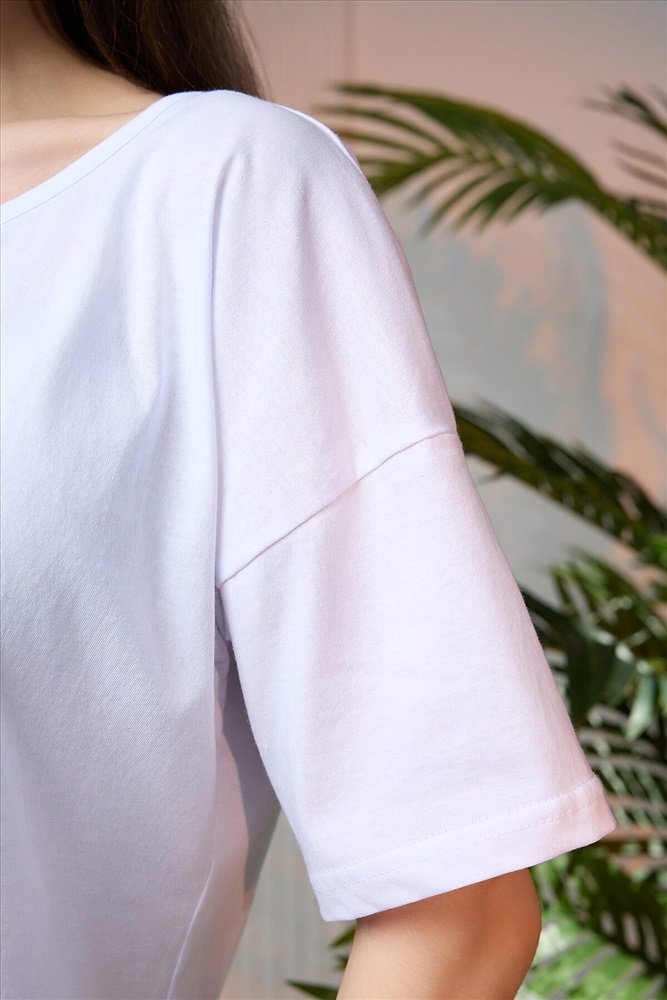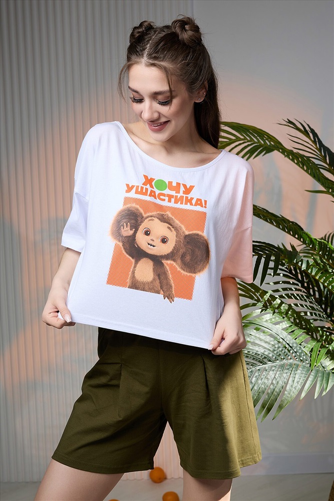 ID товара: 894148 Состав: Хлопок 100% Сезон: Весна/Лето Длина: Средняя Фасон: Прямой Рукав: короткие Рисунок: Фантазийный Основная ткань: Хлопок Стиль: Повседневный Вид ткани: Кулирка Страна бренда: Россия Страна производства: Россия Костюм состоит из укороченной футболки оверсайз и шорт. Футболка с округлой горловиной. Рукав короткий. Горловина обработана бейкой из основного полотна. Шорты на резинке, со складками в верхней части передних половинок. Комментарии к товару