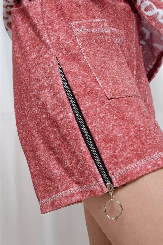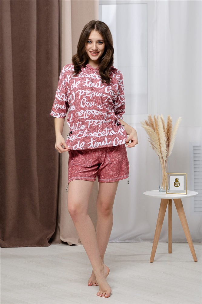 ID товара: 949115 Состав: Хлопок 80%, Полиэстер 20% Сезон: Демисезон Длина: Средняя Фасон: Прямой Рукав: короткие Основная ткань: Хлопок Стиль: Повседневный Вид ткани: Махра Страна бренда: Россия Страна производства: Россия Костюм состоит из туники и шорт. Туника прямая, свободная, с резинкой по талии, с ушками на капюшоне, с разрезами в нижней части боковых швов. Рукав короткий. Шорты прямые, на поясе, с накладными карманами спереди. Вдоль боковых швов расположены молнии. Комментарии к товару