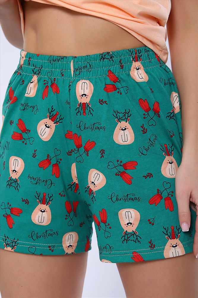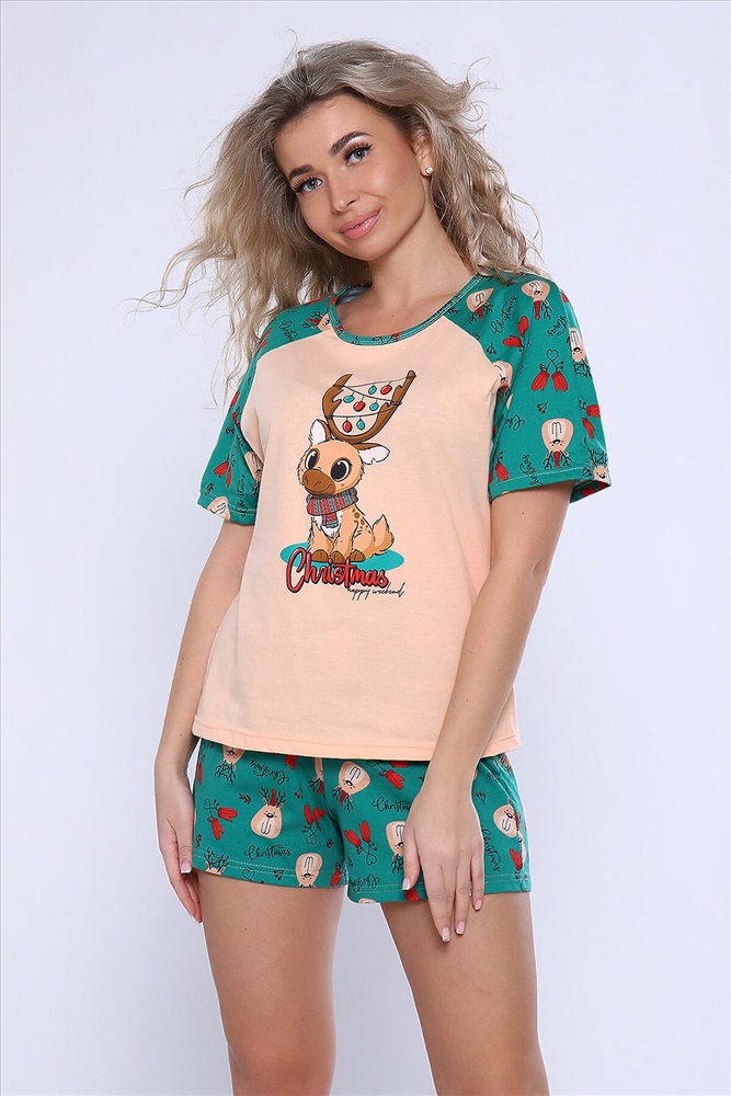 Страна производства: Россия Костюм домашний состоит из футболки и шорт. Футболка с короткими рукавами реглан и принтом. Удобный и практичный вариант для дома и сна.