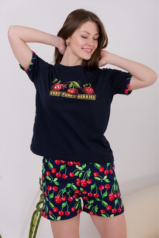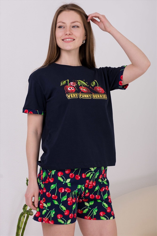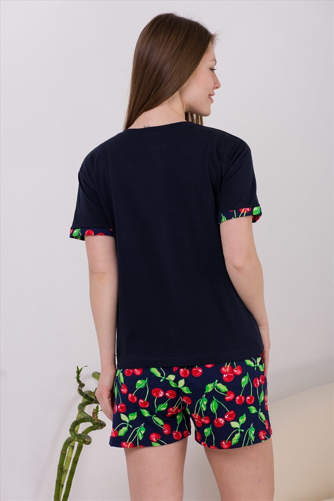 ID товара: 882565 Состав: 100% Хлопок Сезон: Весна/Лето Длина: Средняя Фасон: Прямой Рукав: короткие Тип карманов: В боковом шве Основная ткань: Кулирка Стиль: Повседневный Страна бренда: Россия Страна производства: Россия Костюм, состоящий из футболки и шорт с боковыми карманами. На рукавах манжеты с отворотами. Принт с вишенками делает изделие оригинальным. Костюм незаменим на отдыхе и дома. Комментарии к товару