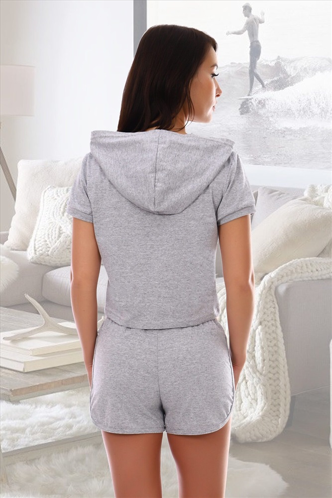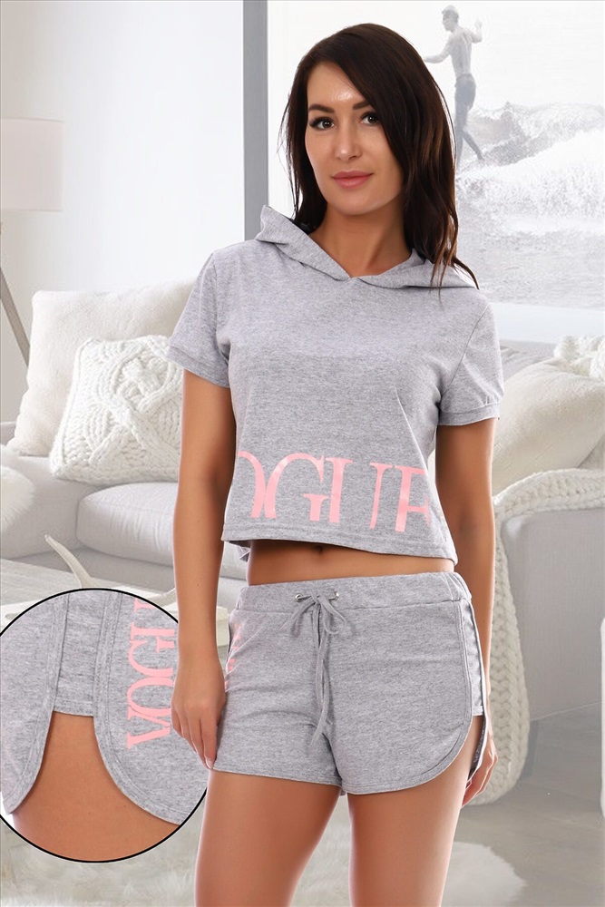 Страна производства: Россия Костюм футболка+шорты - футболка короткая с печатью и капюшоном, шорты с печатью