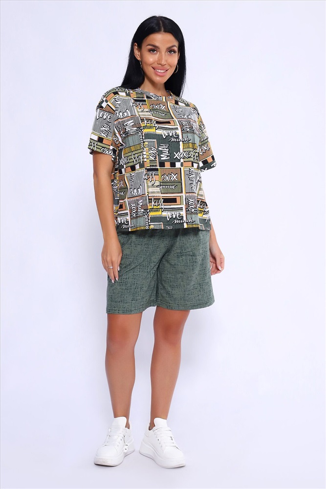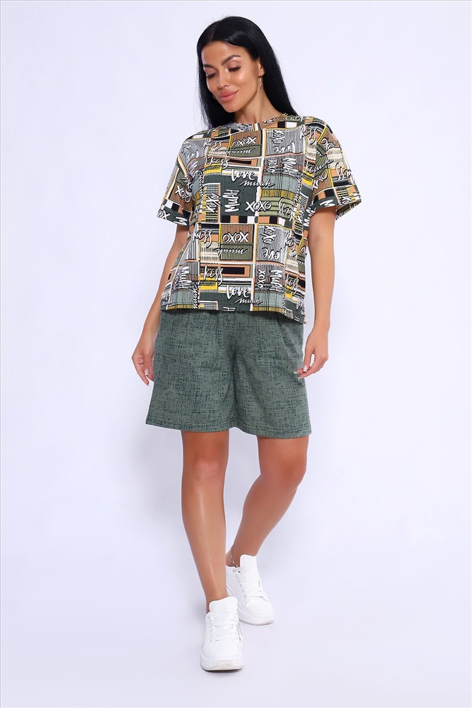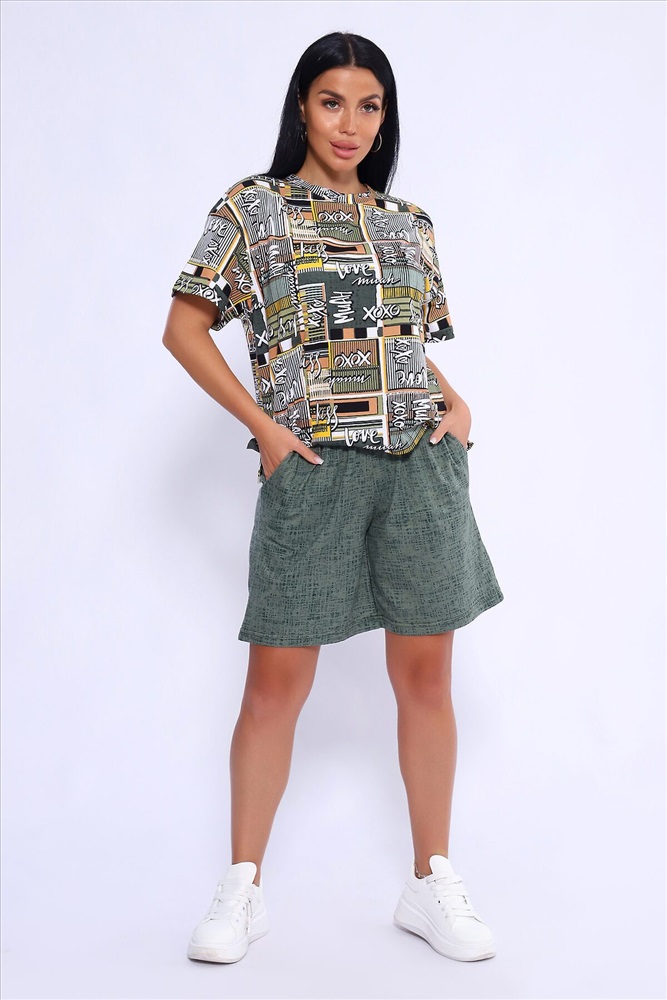 ID товара: 1026891 Состав: 100 % Хлопок Сезон: Весна/Лето Фасон: Прямой Рукав: Короткий Крой брючин: Прямой Рисунок: Фантазийный Тип карманов: Втачные Вид ткани: Кулирка Страна бренда: Россия Страна производства: Россия Женский домашний костюм-двойка фасона оверсайз - это стильный и очень уютный вариант, который подойдет всем без исключения. Он отлично сядет на любой тип фигуры и рост, благодаря своему свободному крою. Костюм изготовлен из высококачественного материала - кулирка (100% хлопок), который не только приятен на ощупь, но и обеспечивает комфорт во время носки благодаря своей хорошей воздухопроницаемости. Модный летний костюмчик имеет свободный крой, который не стесняет движений. Он состоит из футболки и шорт. Футболка со спущенной линией плеча и коротким рукавом, горловина круглая. Широкие шорты с эластичным поясом на резинке. Этот костюм-двойка - отличный выбор для домашнего отдыха или для летних прогулок. Он не только стильный, но и очень удобный. Так что, если вы ищете комфортный и модный вариант для своего гардероба, то этот костюм-двойка - именно то, что вам нужно! Комментарии к товару