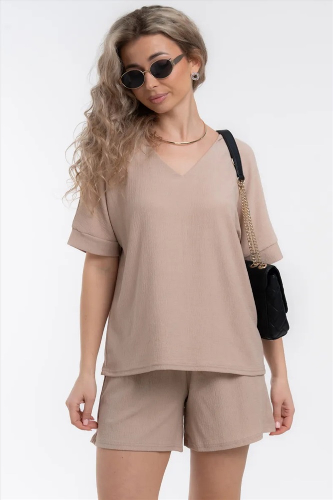 Застежка: без застежки В этом сезоне мы представляем идеальное воплощение летнего шика стильный женский костюм с шортами. Свободный крой и тончайший трикотаж перенесут вас в объятия прохладных летних вечеров. Пять причин полюбить наш костюм с шортами: 1.Ультралегкая ткань нежно окутывает тело, даря невероятное чувство комфорта и свободы. Прогулки по набережной, танцы на пляже или уютные посиделки дома этот костюм идеален для любого случая. 2. Наша инновационная ткань обладает секретной формулой против сминания. Ваш костюм всегда будет выглядеть безупречно, даже после часов активного отдыха или длительной поездки. 3. Этот костюм мечта для тех, кто любит воду. Ткань быстро впитывает влагу и так же быстро высыхает, позволяя вам наслаждаться летними приключениями без лишних хлопот. 4. Свободные шорты и просторная футболка с коротким рукавом создают непринужденный образ, который легко адаптировать под любой стиль. Замените футболку на блузку, чтобы получить более элегантный вид, или дополните образ спортивной обувью для непринужденной прогулки. 5. Наш женский костюм с шортами соответствует последним модным тенденциям. Будьте в тренде этим летом и создавайте яркие образы, которые не оставят окружающих равнодушными. Идеальный выбор для очаровательных леди: этот костюм идеально подходит для женщин любого возраста, фигуры и стиля. От прогулок до танцев костюм с шортами обеспечит максимальный комфорт и свободу движений. Этот костюм станет незаменимой частью летнего гардероба современных подростков. Подходит для беременных дам. Мягкий трикотаж и свободный крой подарят будущим мамам исключительное удобство. Подарите себе элегантность и комфорт этим летом с нашим костюмом с шортами. Тонкий трикотаж, несминаемая ткань и стильный крой сделают этот костюм вашим любимым спутником для любых летних мероприятий. Доступный в широком диапазоне цветов и размеров, включая большие размеры, наш женский костюм с шортами станет идеальным решением для создания вашего уникального летнего образа.