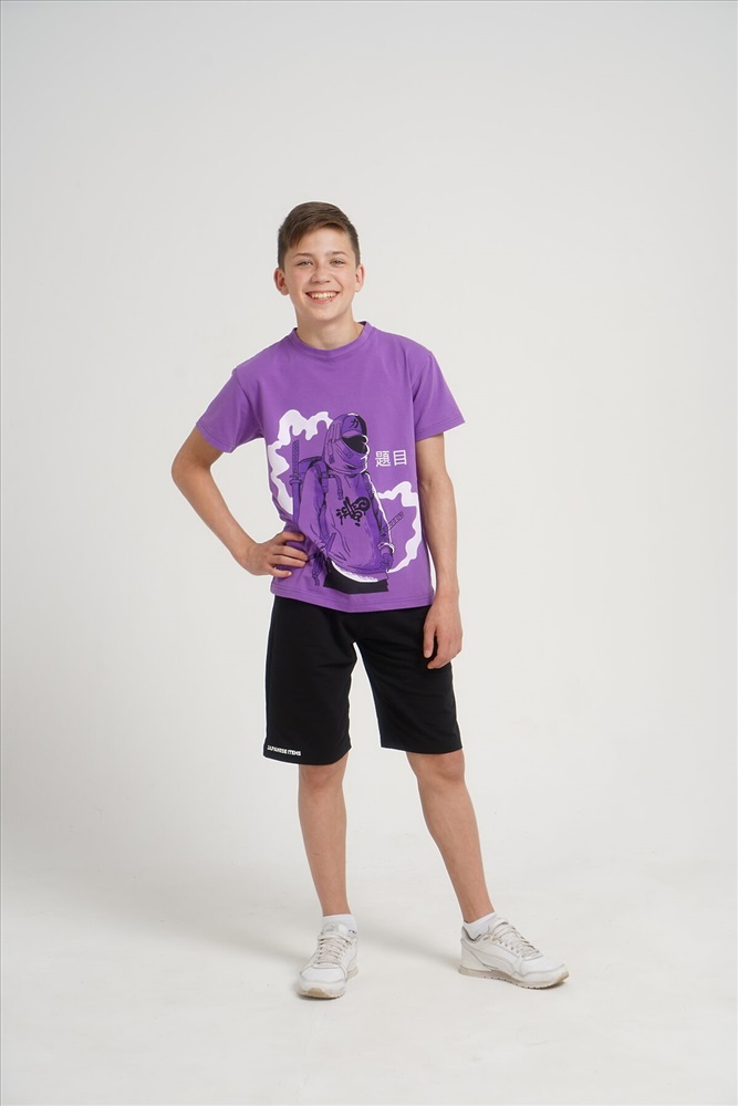 ID товара: 899739 Состав: Верх- 92% Хлопок 8%; Лайкра; Низ- 95% Хлопок; 5% Лайкра Сезон: Весна/Лето Длина: Средняя Фасон: Прямой Рукав: Короткий Тип карманов: В боковом шве Основная ткань: Хлопок Стиль: Повседневный Вид ткани: Кулирка с лайкрой, футер 2-х нитка Страна бренда: Россия Страна производства: Россия Костюм для подростков состоит из двух изделий - футболки и шорт. Футболка выполнена из ткани с абстрактным принтом. Футболка прямого свободного кроя, круглый вырез горловины, втачной рукав. Шорты выполнены из футера 2-х нитки, прямого кроя, с удобной посадкой. На передней половинке шорт - печать. Комментарии к товару