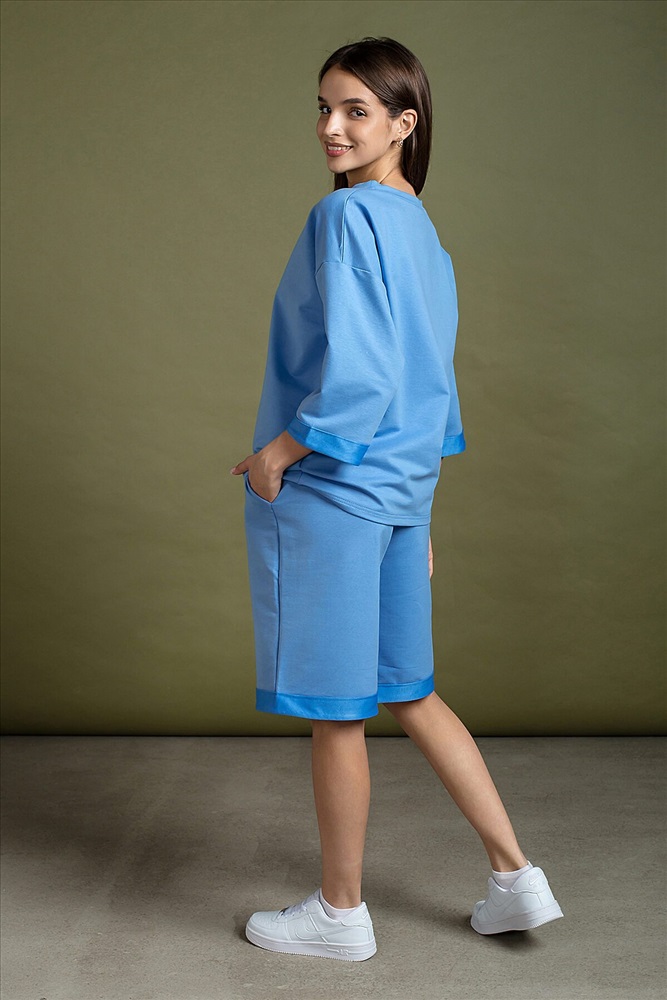 ID товара: 877120 Состав: Хлопок 95%, Лайкра 5% Сезон: Весна/Лето Длина: Средняя Фасон: Свободный крой Рукав: Короткие Крой брючин: Широкий Тип карманов: В шве Основная ткань: Хлопок | Футер с лайкрой 2-х нитка Стиль: Спортивный Страна бренда: Россия Страна производства: Россия Стильный женский летний костюм с шортами. Удобный и легкий костюм из футера 2-нитки высшего качества не будет сковывать движений. Комментарии к товару