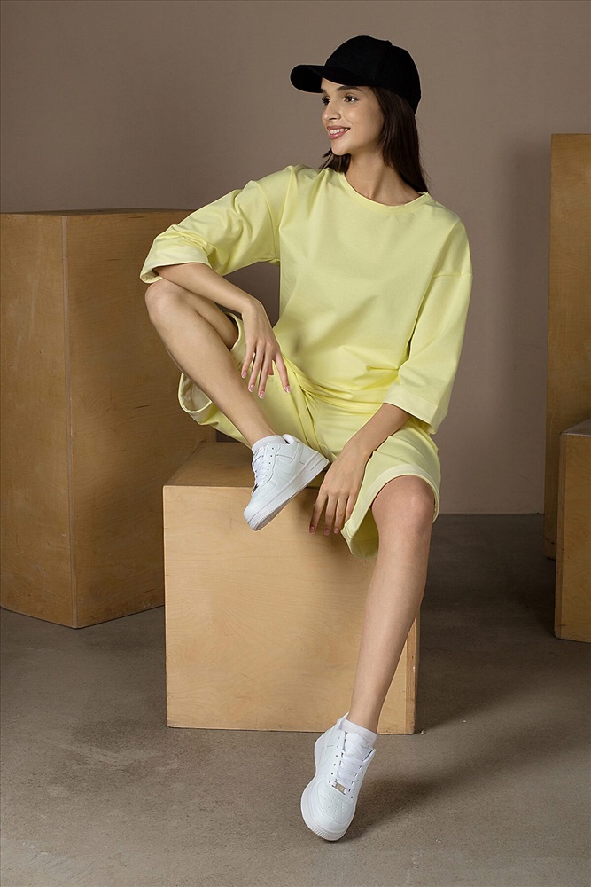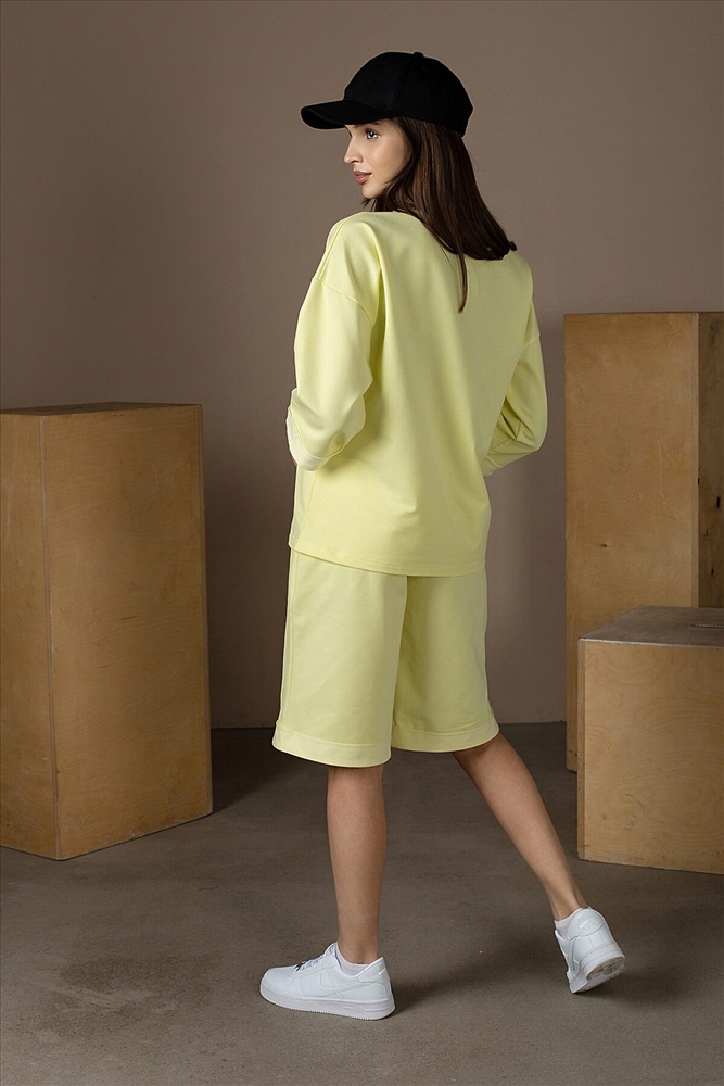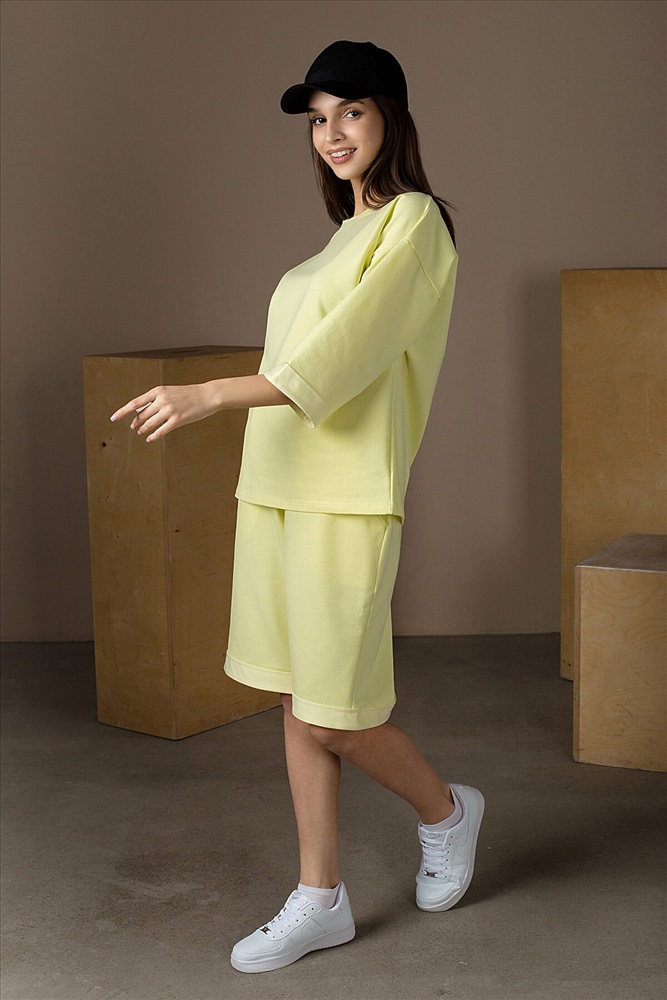 Страна производства: Россия Стильный женский летний костюм с шортами. Удобный и легкий костюм из футера 2-нитки высшего качества не будет сковывать движений.