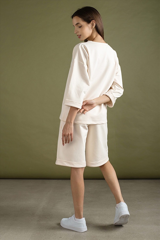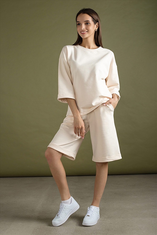 ID товара: 892364 Состав: Хлопок 95%, Лайкра 5% Сезон: Весна/Лето Длина: Средняя Фасон: Свободный крой Рукав: 3/4 Вид застежки: Завязка на кулиску Тип карманов: есть Основная ткань: Хлопок Стиль: Повседневный Вид ткани: Футер с лайкрой 2-х нитка Страна бренда: Россия Страна производства: Россия Стильный женский летний костюм с шортами. Удобный и легкий костюм из футера 2-нитки высшего качества не будет сковывать движений. Комментарии к товару