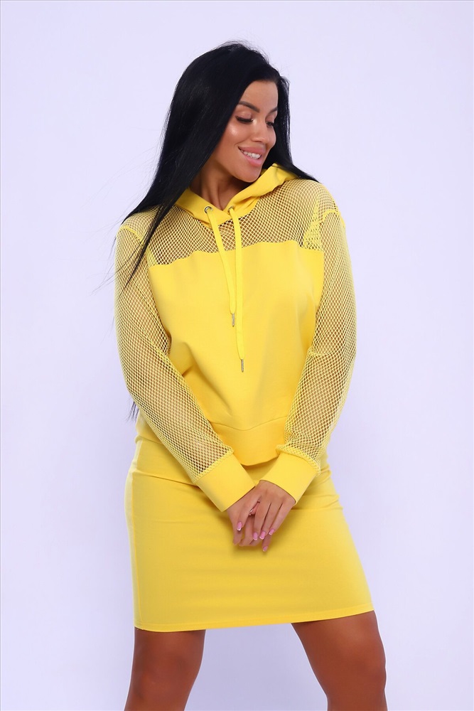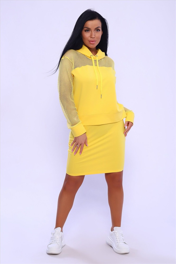 ID товара: 978786 Состав: 75% Хлопок, 20% Полиэстер, 5% Лайкра Сезон: Весна/Лето Длина: Средняя Фасон: Полуприлегающий Рукав: длинные Модель юбки/платья: Облегающий Декоративные элементы: С капюшоном Основная ткань: Хлопок Стиль: повседневный Вид ткани: Футер с лайкрой 2-х нитка Страна бренда: Россия Страна производства: Россия Модель состоит из свободного худи, кокетка и рукав из сетчатой трикотажной ткани и прямой юбки, пояс на эластичной тесьме. Удобный и симпатичный костюм, соответствует тенденциям моды, подойдет практически на любой возраст, можно носить и по отдельности с другими вещами вашего гардероба. В замерах длина рукава указана от начала горловины. Комментарии к товару