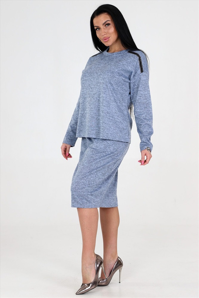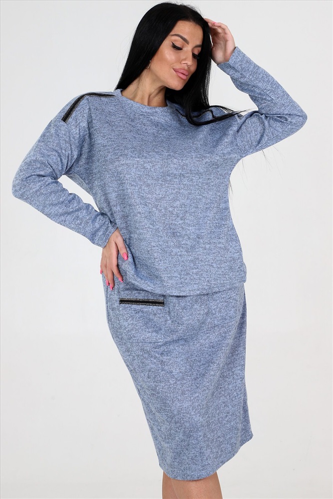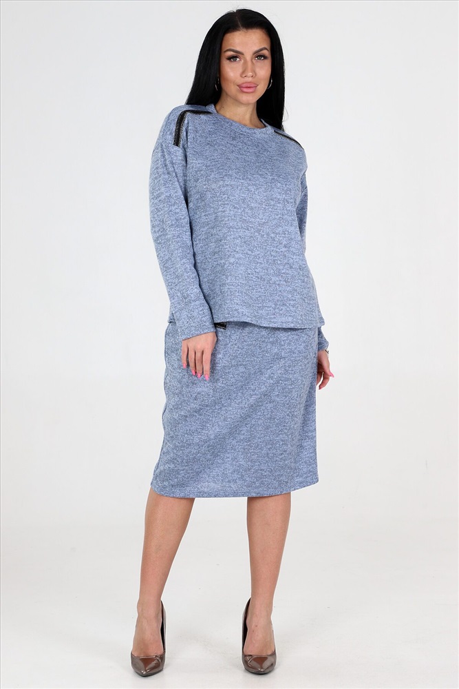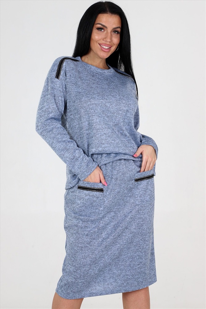 Женский классический костюм с юбкой: стильное сочетание комфорта и элегантности. Туника со спущенным рукавом - модное решение для современной женщины, предпочитающей стиль и удобство. Ее полочка украшена декоративной лентой, добавляющей изысканности образу. Длинные рукава подчеркнут вашу женственность и создадут очаровательный образ. Юбка этого костюма на резинке, что обеспечивает идеальную посадку на фигуре. Накладные карманы, также украшенные декоративной лентой, придают костюму особый шарм и позволяют удобно хранить необходимые мелочи. Костюм изготовлен из превосходной ткани ангора, что обеспечивает мягкость, тепло и приятные ощущения при ношении. Представлен в двух нежных расцветках - голубой и зеленой, позволяя выбрать тот, который лучше всего подчеркнет вашу индивидуальность. Широкий размерный ряд от 50 до 60 размера гарантирует, что каждая женщина найдет свой идеальный вариант.