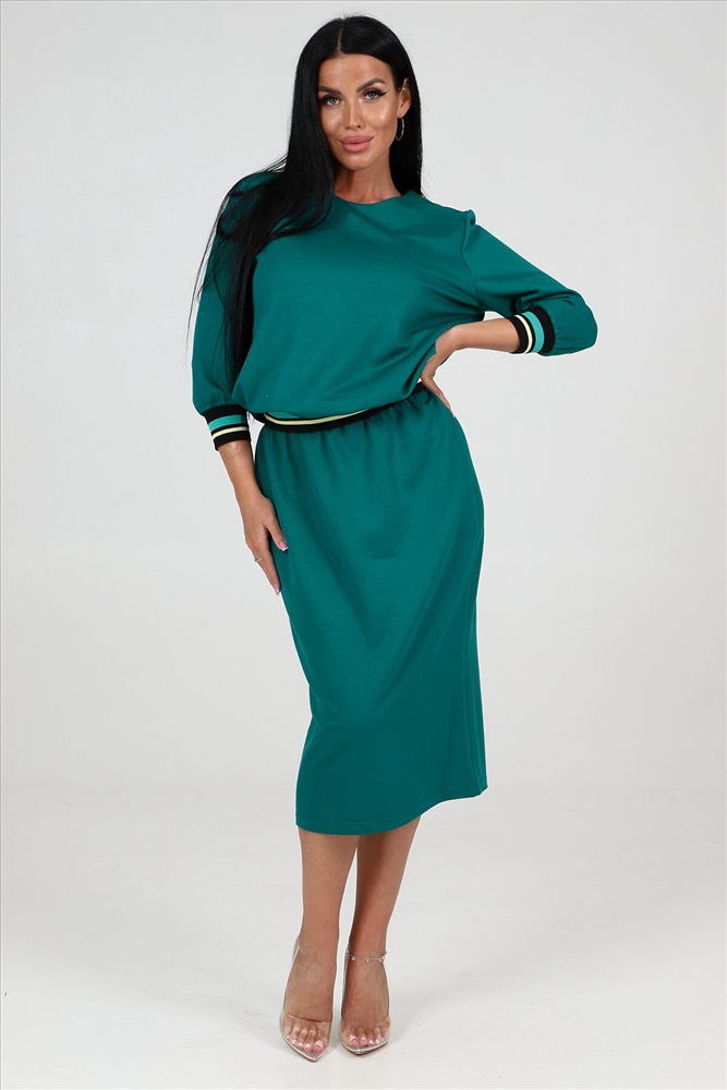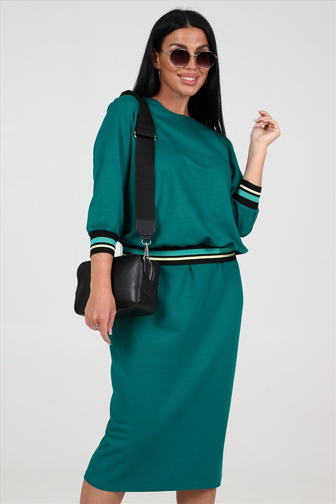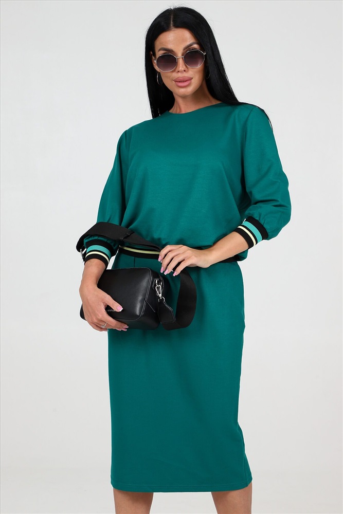 ID товара: 1019094 Состав: 75% Полиэстер, 20% Вискоза; 5% Спандекс Сезон: Весна/Лето Фасон: Свободный крой Рукав: 3/4 Модель юбки/платья: Прямая Рисунок: Полоска Вид ткани: Академик Страна бренда: Россия Страна производства: Россия Изящный комплект, состоящий из туники и прямой юбки, изготовлен из эксклюзивной ткани академик, гарантируя не только превосходный комфорт, но и долговечность. Одна из ключевых особенностей этого костюма изящный рукав, украшенный очаровательной манжетой из отделочной ленты, которая привносит особую изюминку и подчеркивает безупречный стиль. Низ туники также декорирован элегантной отделочной лентой, создавая гармоничное сочетание элементов и делая костюм идеальным выбором для важных мероприятий или деловых встреч. Прямая юбка, являющаяся неотъемлемой частью этого костюма, привносит современный шарм и идеально сидит на фигуре, подчеркивая ее достоинства и придавая образу изысканности. Размерный ряд от 48 до 58 позволяет каждой женщине найти идеальную посадку, соответствующую ее фигуре. Комментарии к товару