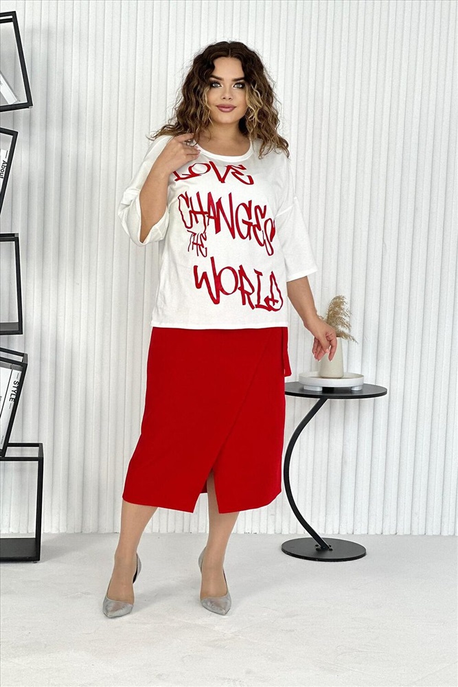 Женский костюм, верх - кофта свободного покроя оверсайз из легкой ткани супрем, рукав 3/4, округлая горловина, с принтом на передней полочке. низ - юбка ткань барби, на запах, застежка - пуговица внутри и завязки снаружи. Стильное и женственное дополнение для вашего гардероба, подойдет для повседневной носки, на праздник и на работу.