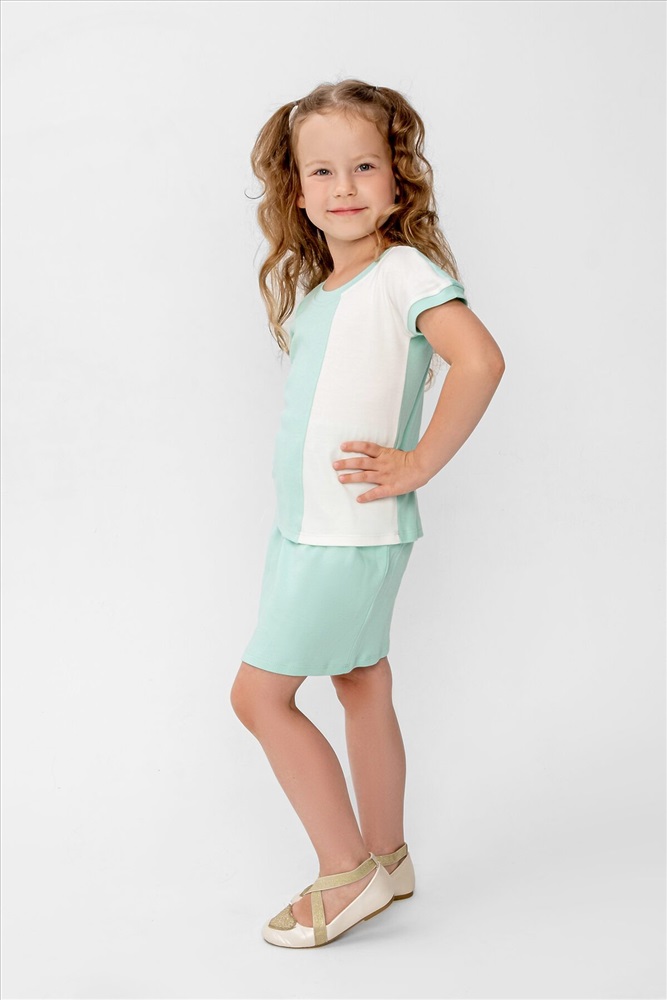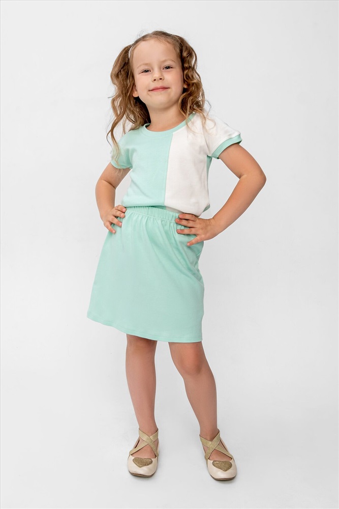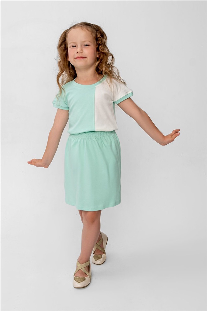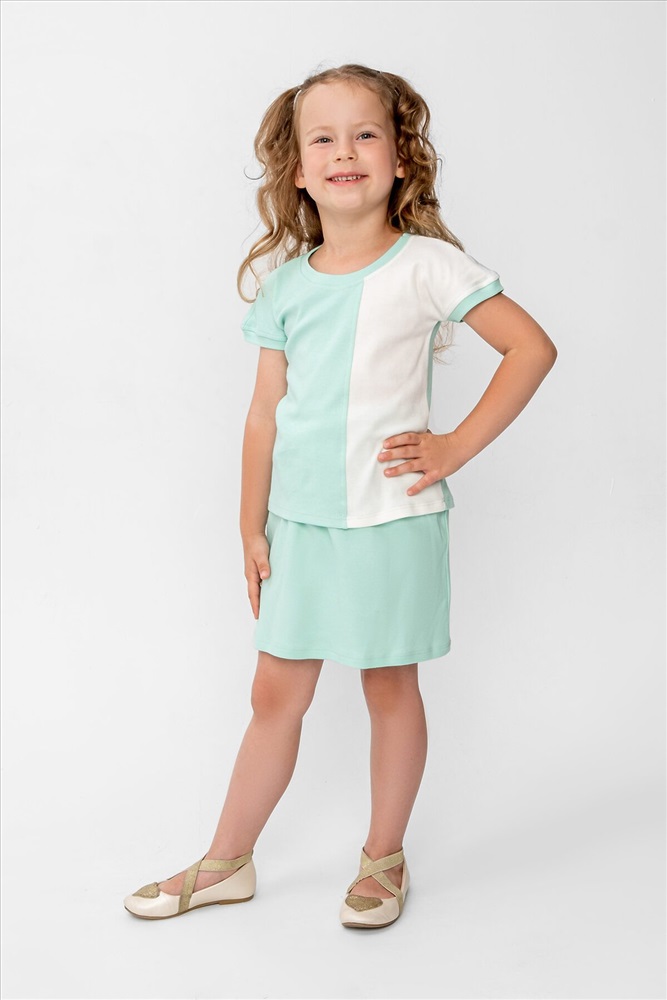 ID товара: 876332 Состав: 100% Хлопок Сезон: Весна/Лето Длина: Средняя Фасон: Прямой Рукав: короткие Модель юбки/платья: Прямой силуэт Основная ткань: Интерлок Стиль: повседневный Страна бренда: Россия Страна производства: Россия Легкий костюм для девочки, футболка и юбка. Выполнены из мягкой, приятной к телу ткани, интерлок 100% хлопок. Подходит для прогулок, для садика, для повседневного наряда. Легко стирается, просто утюжится. Комментарии к товару