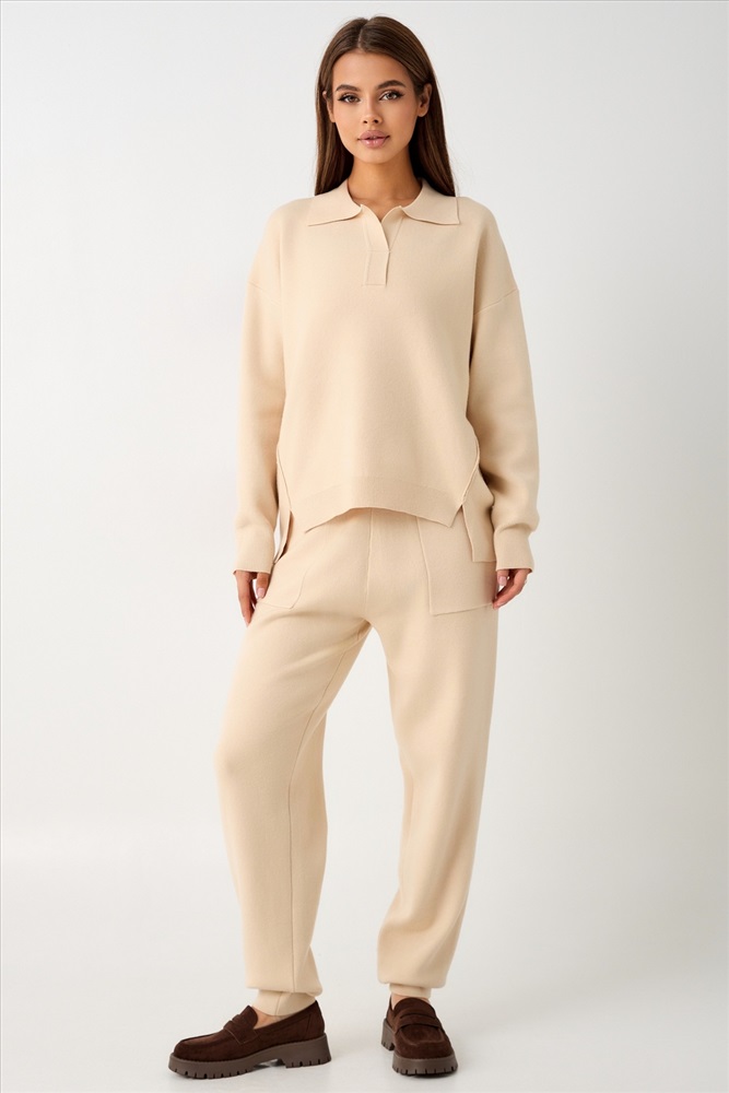Состав: 50% вискоза, 28% полиэстер, 22% нейлон Модель: Костюм вязаный теплый с брюками и кофтой #4 Тип товара: костюм с брюками Материал: вязаный трикотаж | вязаный трикотаж Бренд: Zadumov Карман: боковые | накладные Назначение: для дома НДС: Без НДС Особенности: на резинке | вязаные изделия Отделка: с карманами | с манжетами Рисунок: однотонные Рукав: длинный рукав Сезонность: лето | осень | весна | зима Силуэт: свободный Стиль: домашний | молодежный | нарядный | офисный | повседневный Воротник: отложной воротник Застежка: без застежки Вязаный костюм станет незаменимой основой женского гардероба для прохладной погоды, комфортным способом утепления. Он сшит из мягкой, приятной к телу пряжи с шерстяными волокнами, которая надолго сохраняет насыщенность цвета и свою форму, выдерживая интенсивное ношение и частые стирки. Стильный дизайнерский комплект отличается продуманным дизайном: кофточка - оверсайз со спущенным плечом, V-образным вырезом горловины и отложным воротником обеспечивает комфорт, а брюки - спортивки с широким поясом - резинкой, длинными штанинами с манжетами и удобными карманами подчеркивают силуэт, не сковывая движений. Универсальность классической пастельной палитры и лаконичного дизайна позволяет легко включать комплект в коллекцию вещей для осенне - весеннего демисезонного и зимнего периода. Он идеально сочетается с однотонными вариантами обуви и нарядными праздничными аксессуарами для создания элегантного и собранного образа. Трендовый костюмный ансамбль выбирают для повседневной городской активности и для более расслабленного домашнего формата времяпрепровождения. Он дарит ощущение уюта и стиля, сохраняя комфортную температуру тела в холодный день и вечернее время с ранней осени до поздней весны. Популярный у покупателей набор, с кашемиром в составе, из двух предметов одежды отлично подойдет для прогулок и неформальных офисных образов. Модный трикотажный костюм - двойка с джоггерами станет приятным приобретением для женщины или девушки высокого, или невысокого роста, подойдет для женственного Family look в кэжуал, спортшик или у2к (y2k) стилях. Подростки могут носить такой комплект в молодежном дизайне вместо спортивной формы в школе, университете или колледже на уроке физкультуры. Это практичное приобретение для себя и полезный подарок для близких на любое торжество, в том числе день рождения. В линейке бренда представлены модели в различных фасонах, в том числе с худи - зипкой. Таблица размеров и весакофта