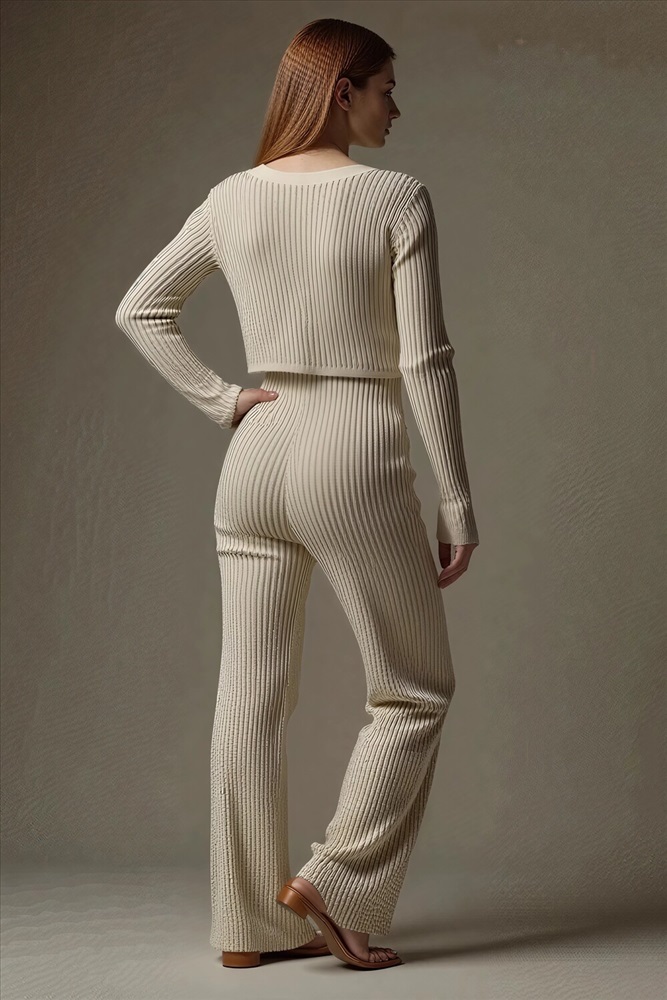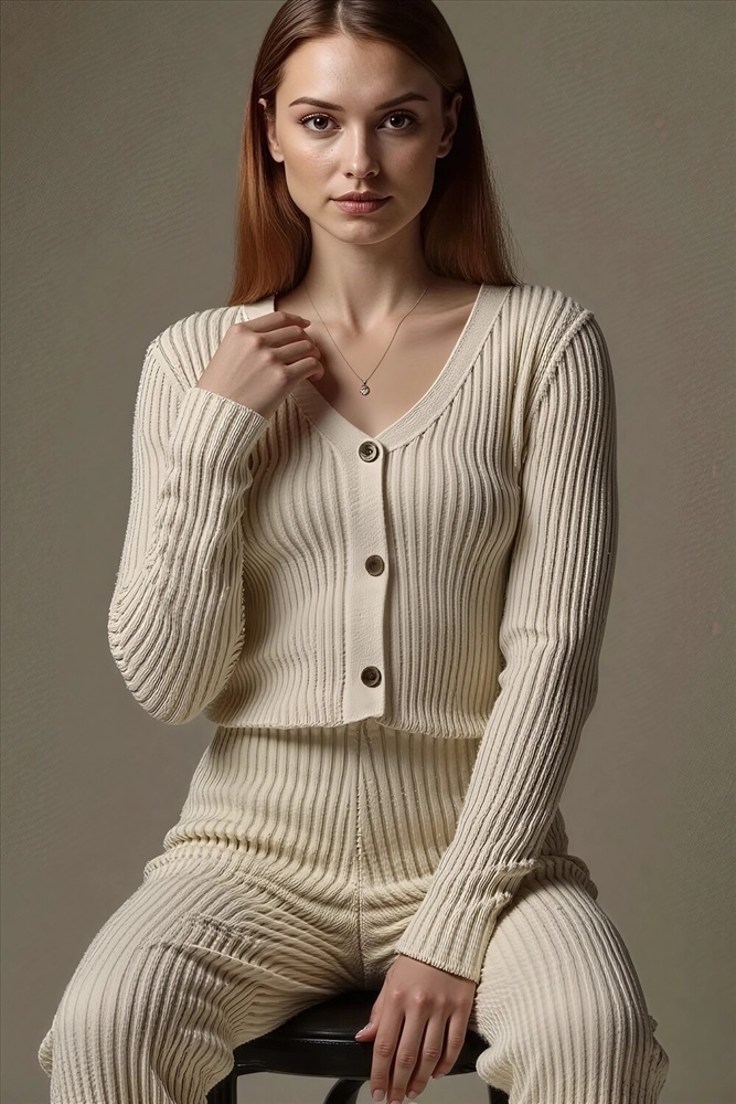 Застежка: пуговицы Вязаный костюм станет незаменимой основой женского гардероба для прохладной погоды, комфортным способом утепления. Он сшит из мягкой, приятной к телу пряжи с выразительной рифленой фактурой в полоску. Вертикальные рельефные линии, проходящие сверху вниз по всему костюму, визуально вытягивают силуэт, делая его более стройным и изящным. Такая вязка придает ткани особую мягкость и объем. Стильный дизайнерский комплект отличается продуманным дизайном: кофточка с V-образным вырезом горловины на пуговицах обеспечивает комфорт, а брюки - спортивки с высоким поясом - резинкой, длинными штанинами подчеркивают силуэт, не сковывая движений. Универсальность классической пастельной палитры и лаконичного дизайна позволяет легко включать комплект в коллекцию вещей для осенне - весеннего демисезонного и зимнего периода. Он идеально сочетается с однотонными вариантами обуви и нарядными праздничными аксессуарами для создания элегантного и собранного образа. Трендовый костюмный ансамбль выбирают для повседневной городской активности и для более расслабленного домашнего формата времяпрепровождения. Он дарит ощущение уюта и стиля, сохраняя комфортную температуру тела в холодный день и вечернее время с ранней осени до поздней весны. Популярный у покупателей набор, из двух предметов одежды отлично подойдет для прогулок и неформальных офисных образов. Модный трикотажный костюм - двойка станет приятным приобретением для женщины или девушки высокого или невысокого роста, подойдет для женственного Family look в кэжуал, спортшик или у2к стилях. Подростки могут носить такой комплект в молодежном дизайне вместо спортивной формы в школе, университете или колледже. Это практичное приобретение для себя и полезный подарок для близких на любое торжество, в том числе день рождения. В линейке бренда представлены модели в различных фасонах, в том числе с худи - зипкой, которая застегивается на молнию, с капюшоном.