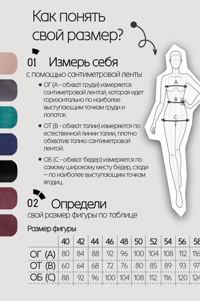 | Объем бедер | 96 | 100 | 104 | 108 | 114 | 118 |