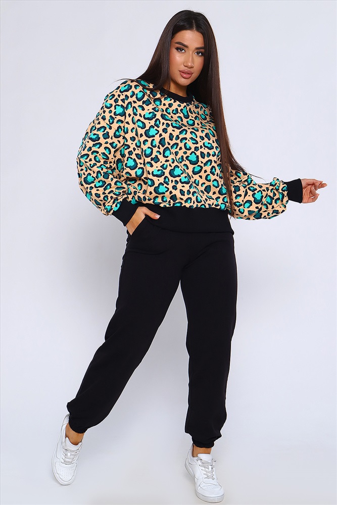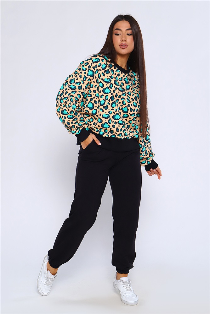 Состав: Хлопок 62 %; полиэстер 30%; лайкра 8% Модель: Костюм женский 24277 Тип товара: костюм с брюками Материал: футер 2-х нитка | футер 2-х нитка Бренд: Натали Суслова Карман: боковые НДС: 5% Особенности: на резинке Отделка: с карманами | с манжетами Посадка: высокая посадка Рисунок: анималистичный | разное Рукав: длинный рукав Сезонность: лето | осень | весна | зима Силуэт: оверсайз | свободный Стиль: молодежный | повседневный | спортивный Воротник: без воротника Застежка: без застежки Костюм спортивный женский трикотажный. Легкая и приятная ткань. Костюм состоит из двух частей: спортивная кофта свитшот, штаны джегинсы. Стильный спортивный костюм двойка, который подойдет девушкам и женщинам, любящим стиль и комфорт. Костюм из ткани футер 2-х нитка, без начеса. Незаменим на прогулке, в путешествиях, в самолете, при занятиях спортом и фитнесом. Этот спортивный костюм с брюками займет особое место в вашем гардеробе. Рекомендуем бережную стирку при температуре не более 30 градусов. Таблица размеров и весакофта