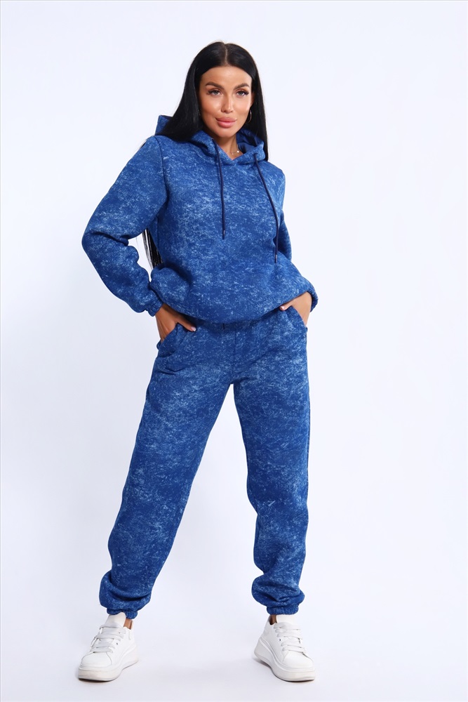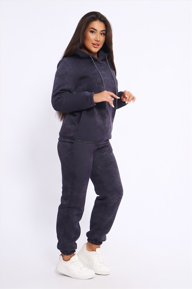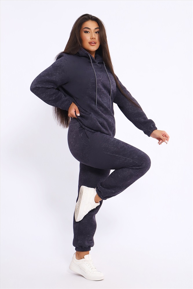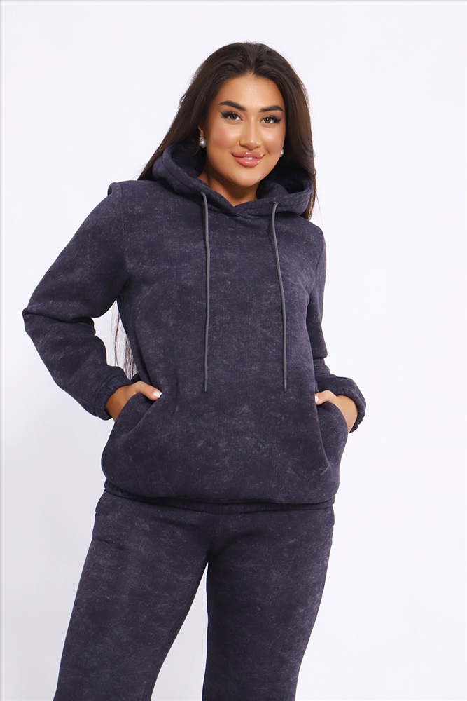 Костюм женский состоит из худи слегка свободного, но классического кроя с карманами по бокам в швах и брюк с карманами элегантно интегрированными в данный фасон. Женский спортивный костюм с начесом дышащий, мягкий, комфортный благодаря своему натуральному составу ткани, прекрасно подходит для прохладной и холодной погоды. Двойной, но легкий капюшон добавляет эстетики. Широкий пояс брюк создаёт комфортную фиксацию. Изделие не увеличивает вас на два размера, но остаётся тёплым. Полотно в своей основе состоит из хлопка, добавление полиэстера делает его стабильным в использование и прочным к многократным стиркам (при соблюдении всех требований). Первая стирка на изнанку.