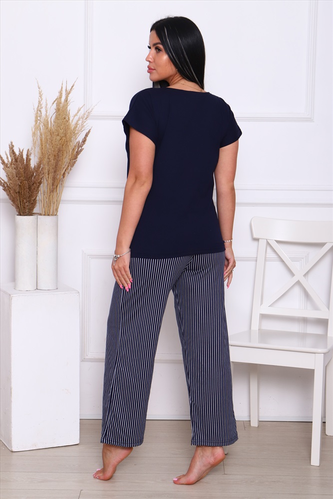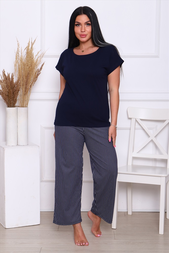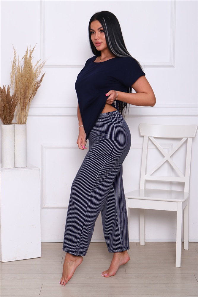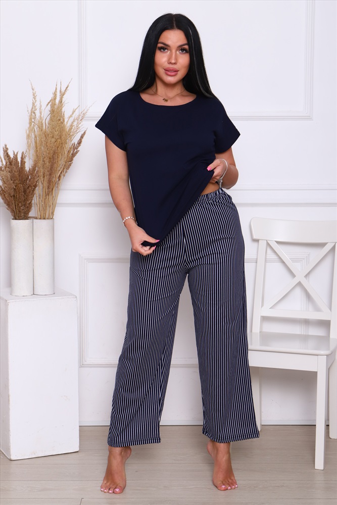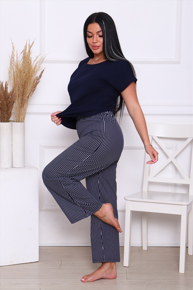 Застежка: без застежки Комплект со штанами и кофтой идеальный выбор для вас! Этот костюм выполнен из натурального хлопка, который позволят вашей коже дышать в любое время года. Домашний костюм состоящий из штанов и футболки дизайн подчеркнет ваш стиль и подойдет для любого настроения будь то классический или молодежный. Популярный полосатый дизайн позволят подобрать костюм для любой женщины от пышных до маленьких размеров. Этот костюм отличный выбор для дома, дачи или для ночного отдыха.