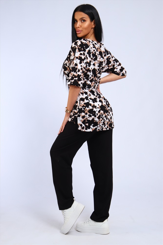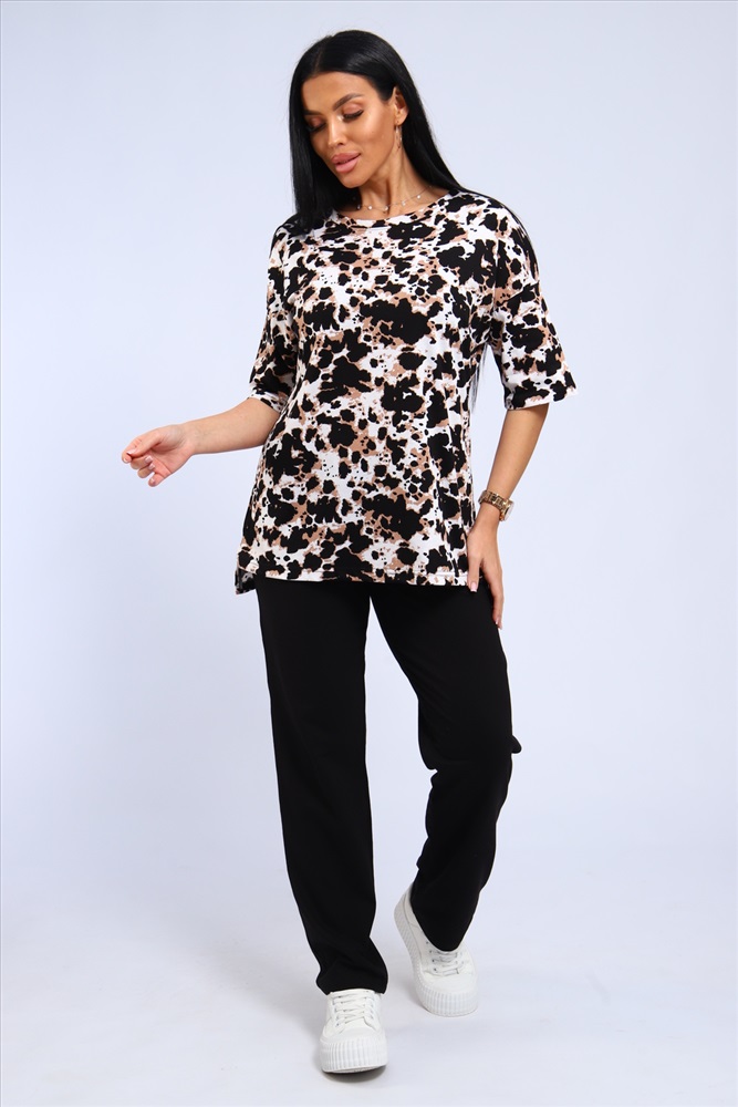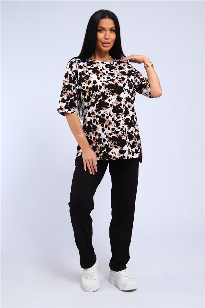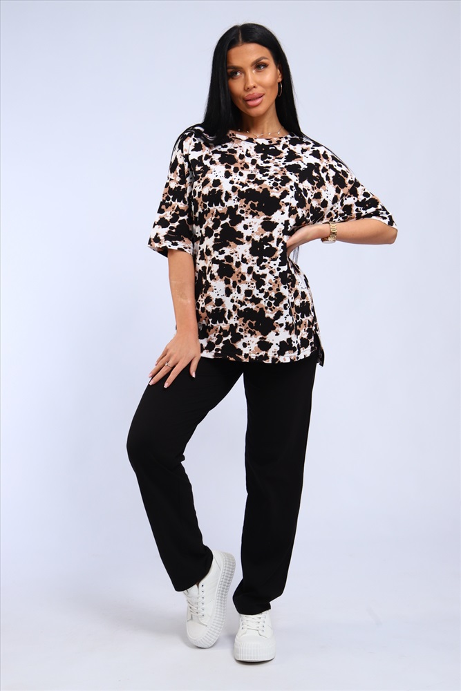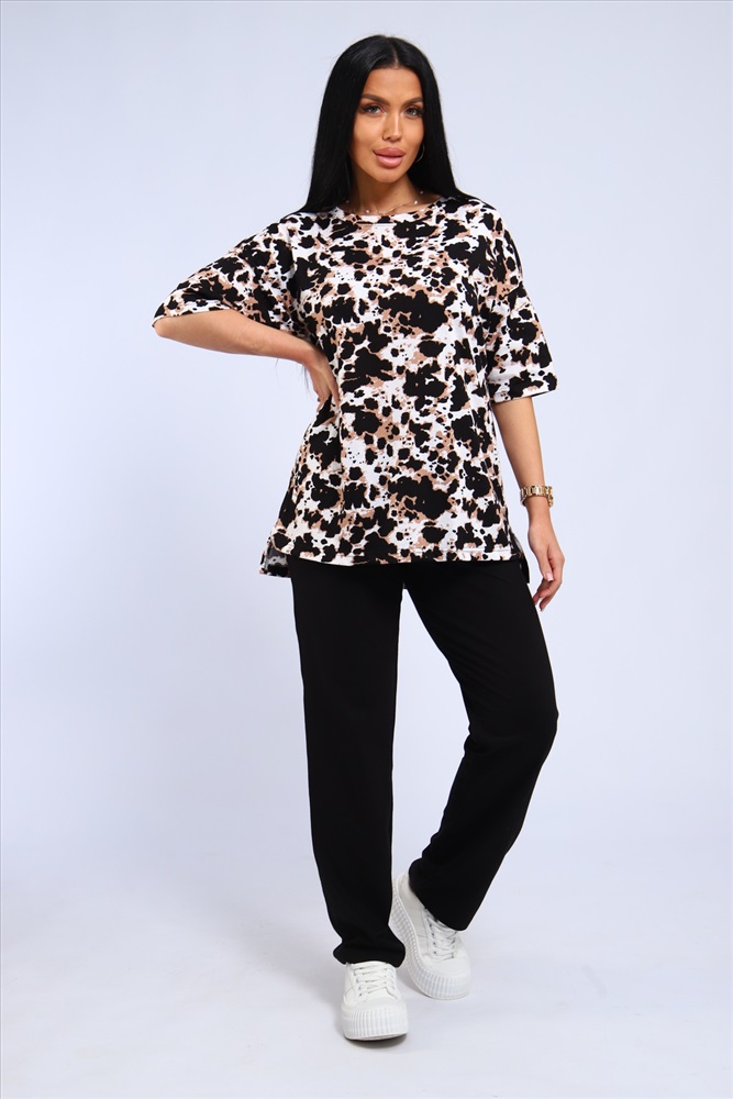 Состав: 100% хлопок Модель: Костюм женский 343 Тип товара: костюм с брюками Материал: кулирка | кулирка Бренд: NIRMIN Карман: без карманов Назначение: для дома НДС: 5% Особенности: на резинке Посадка: средняя посадка Рисунок: анималистичный Рукав: короткий рукав Сезонность: лето | осень | весна | зима Силуэт: свободный Стиль: домашний | повседневный Воротник: без воротника Застежка: без застежки Костюм женский с брюками. Футболка полуприлегающего силуэта. Короткий рукав со спущенным плечом. Брюки прямого кроя. Таблица размеров и весафутболка