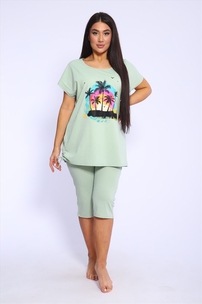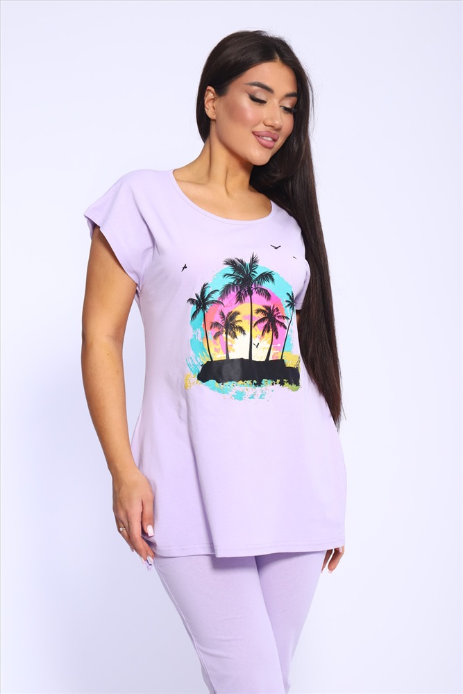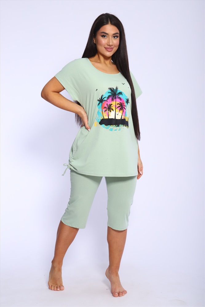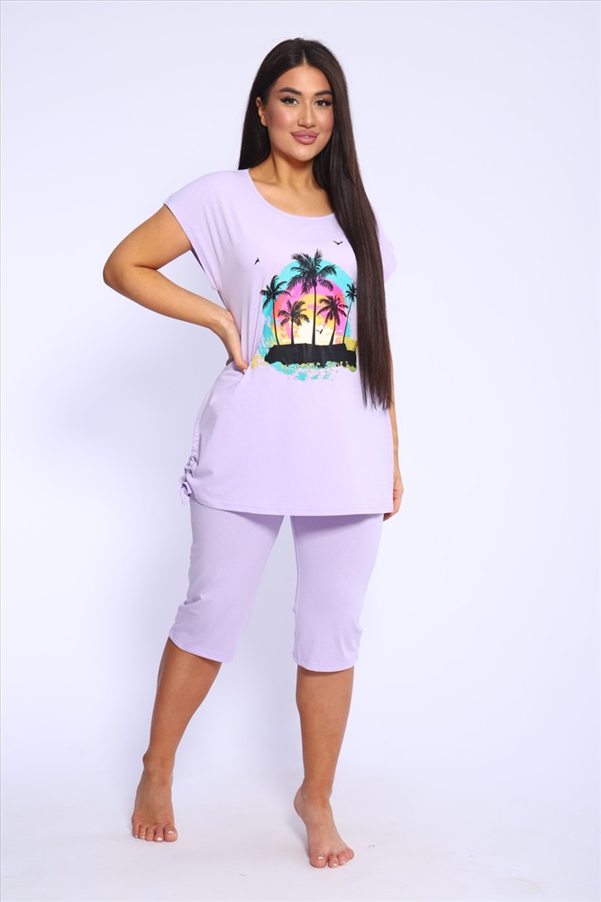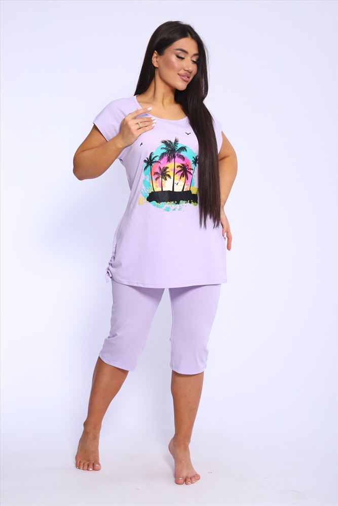 Застежка: без застежки Представляем вашему вниманию женский домашний спортивный костюм, который идеально подходит для комфортного времяпрепровождения дома и на даче. Этот комплект включает в себя удобную футболку и стильные бриджи, которые глубоко заботятся о вашем комфорте. Изготовленный из мягкого и дышащего материала, он отлично подходит для расслабления и активного отдыха. Футболка обладает лаконичным дизайном, что добавляет универсальности, а бриджи прекрасно сочетаются с ней, создавая непринужденный ансамбль. Такой набор станет идеальным выбором в качестве домашней пижамы, позволяя вам чувствовать себя уютно и привлекательно.