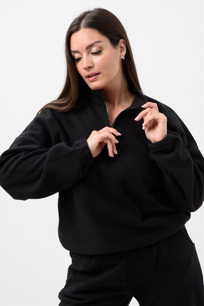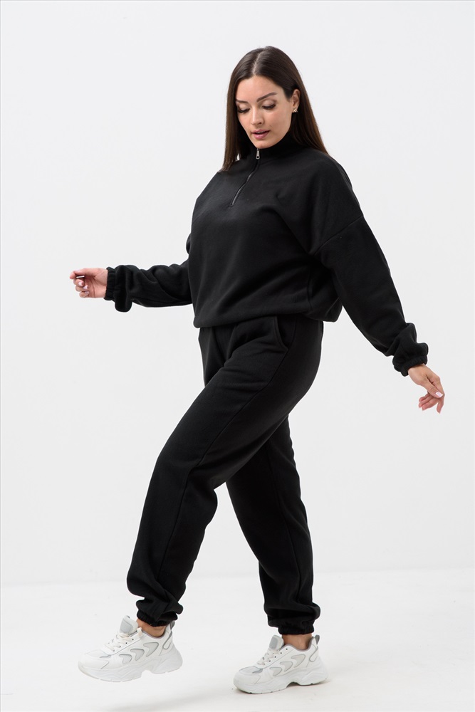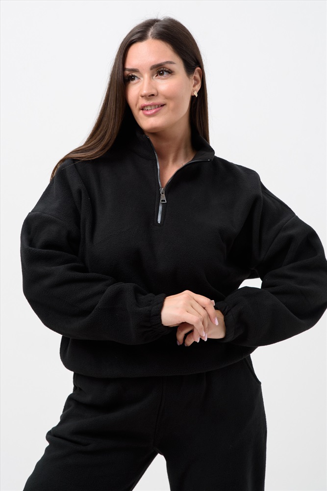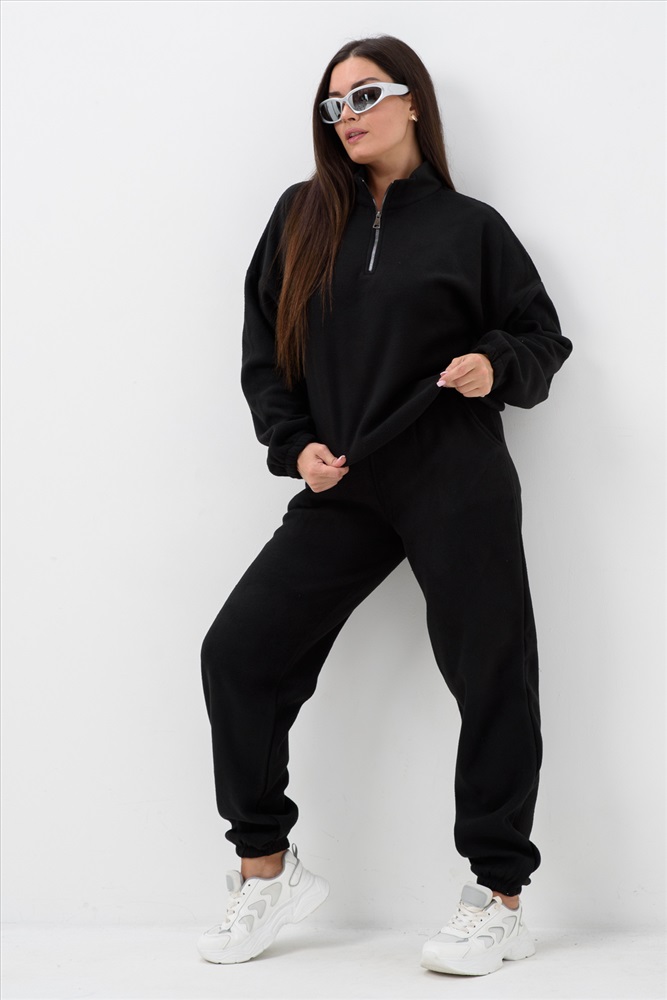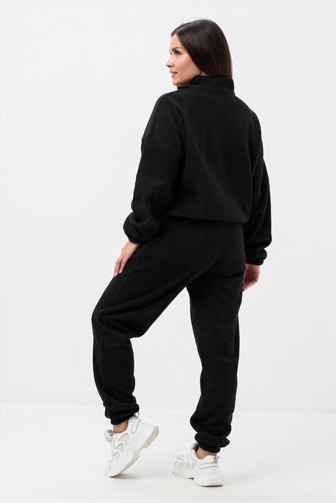 Застежка: молния Женский спортивный костюм из теплой ткани - флис, прекрасный выбор на прохладную погоду, Верх - толстовка с горлом-стойкой и короткой молнией, понизу и на манжетах резинка, низ - брюки с карманами, пояс и низ штанов на резинке. Двойка подойдет для прогулок и дома.