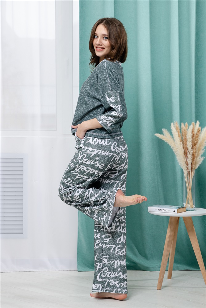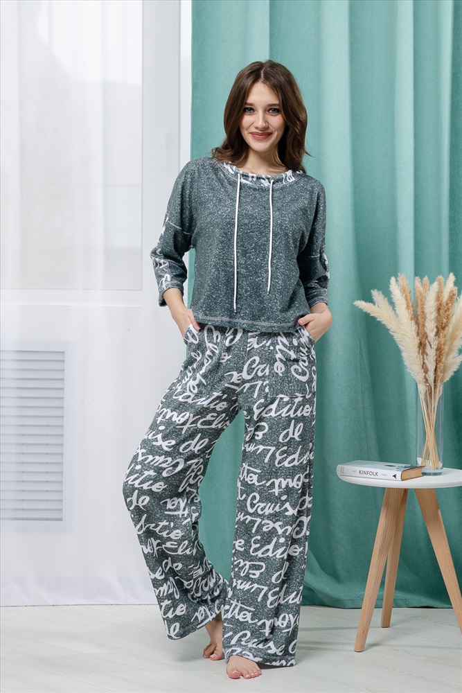 Состав: хлопок 80%; ПЭ 20% Модель: Костюм женский 8399 Тип товара: костюм с брюками Материал: махра | махра Бренд: Натали Суслова Карман: боковые Назначение: для дома Особенности: на резинке Отделка: с карманами | со шнурком Посадка: высокая посадка Рейтинг: Рейтинг 4 и выше Рисунок: надпись Рукав: рукав 3/4 Сезонность: лето | осень | весна | зима Силуэт: свободный Скидка: любая | от 10% и больше | от 30% и больше | от 50% и больше Стиль: домашний Воротник: воротник хомут Застежка: без застежки Костюм состоит из туники и брюк. Туника прямого силуэта, со спущенной проймой, с округлой горловиной. Рукав длинной 3/4, со вставкой из отделочного полотна вдоль рукава. Горловина обработана обтачкой из отделочного полотна, со шнуром. Брюки прямые, свободные, на поясе, с боковыми накладными карманами. Таблица размеров и весаджемпер
