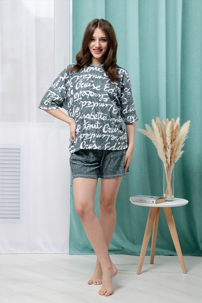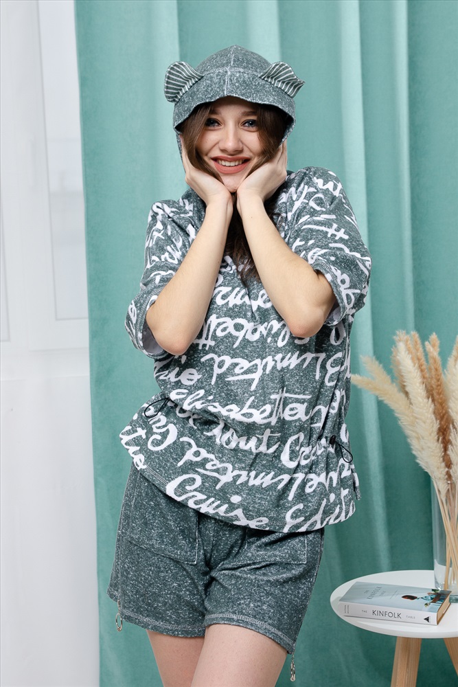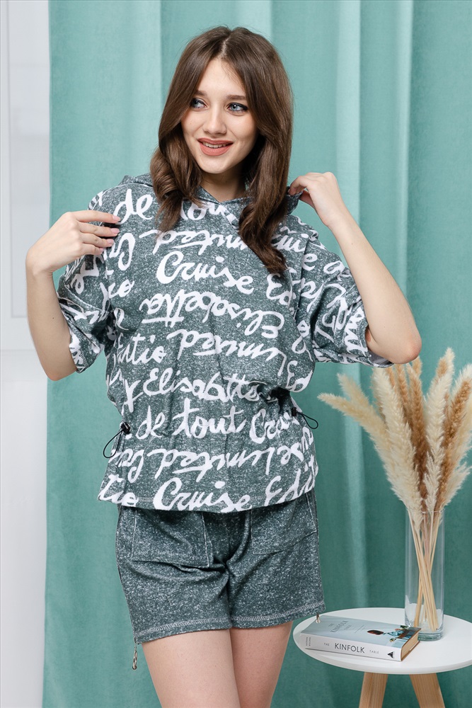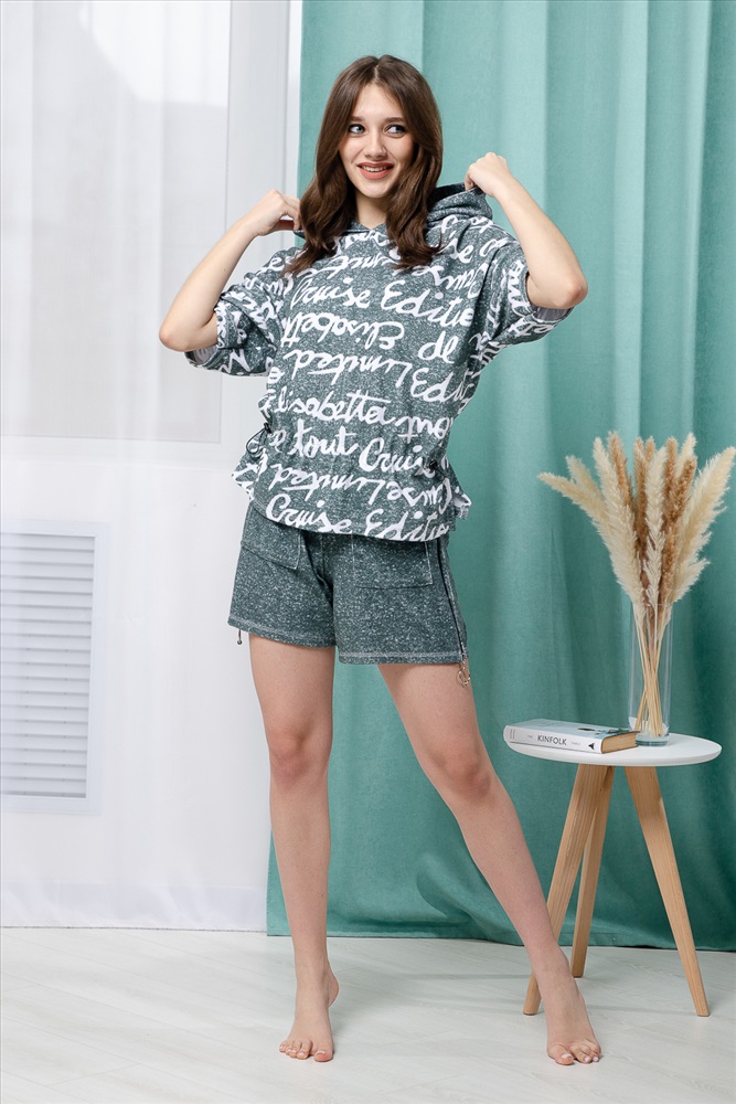 Состав: хлопок 80%, ПЭ 20% Модель: Костюм женский 8402 Тип товара: костюм с шортами Материал: махра | махра Бренд: Натали Суслова Карман: накладные Назначение: для дома НДС: 22% Особенности: на резинке Отделка: с карманами Посадка: высокая посадка Рисунок: надпись Рукав: короткий рукав Сезонность: лето | осень | весна | зима Силуэт: свободный Скидка: любая | от 10% и больше | от 30% и больше | от 50% и больше Стиль: домашний Воротник: с капюшоном Застежка: без застежки Костюм состоит из туники и шорт. Туника прямая, свободная, с резинкой по талии, с ушками на капюшоне, с разрезами в нижней части боковых швов. Рукав короткий. Шорты прямые, на поясе, с накладными карманами спереди. Вдоль боковых швов расположены молнии. Таблица размеров и весафутболка