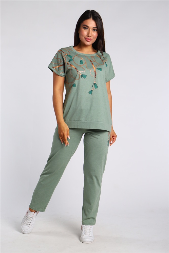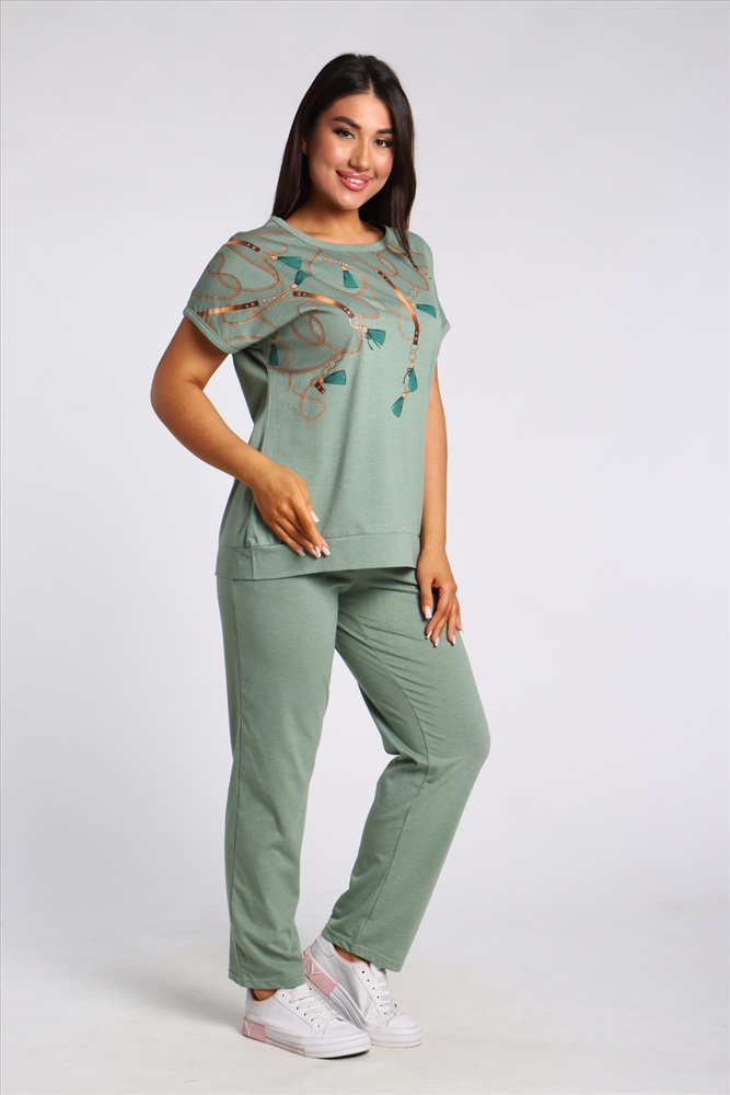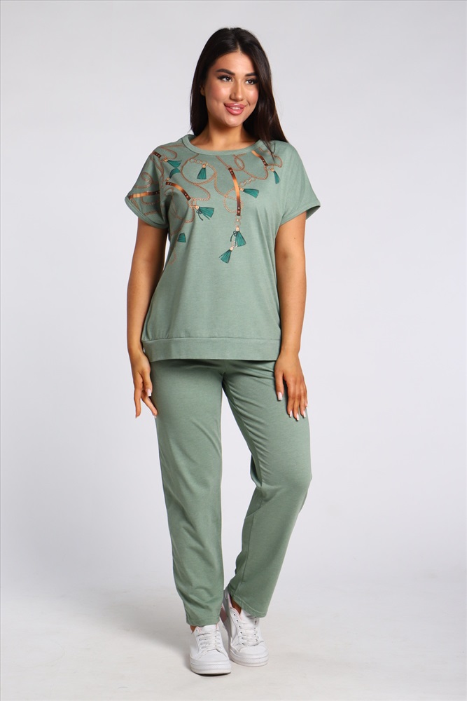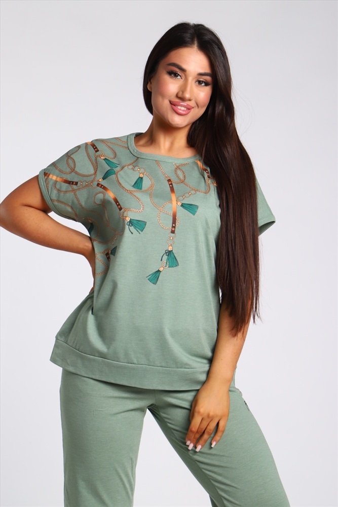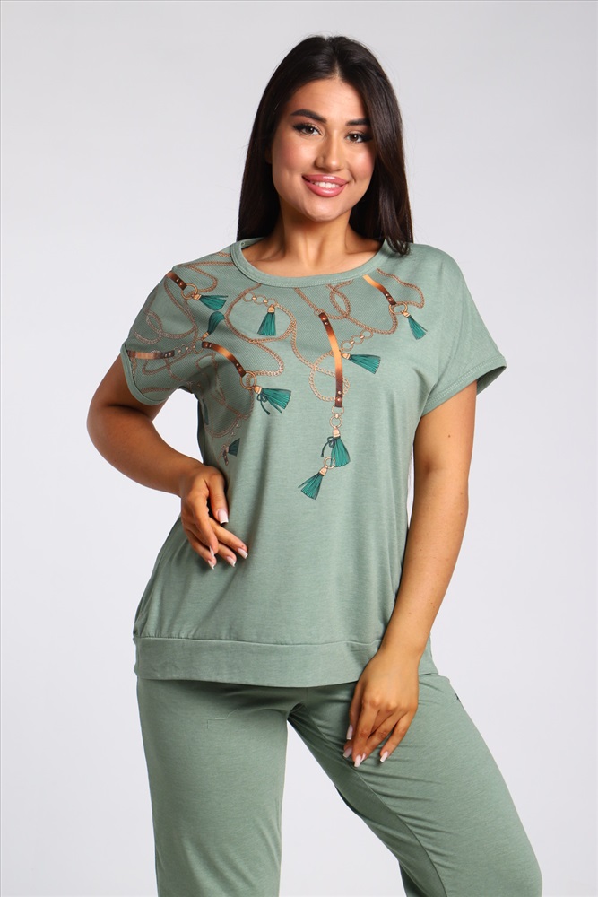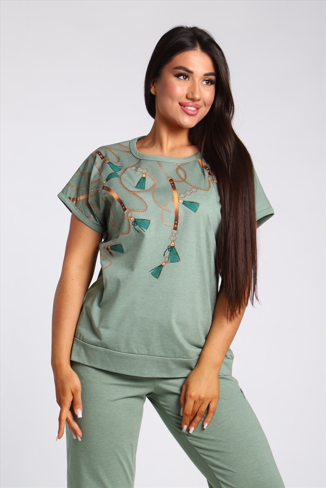 Состав: 50% хлопок; 50% п/э Модель: Костюм женский КБЖ0042В Тип товара: костюм с брюками Материал: кулирка | кулирка Бренд: ZF FASHION Карман: боковые Особенности: на резинке Отделка: с карманами Посадка: средняя посадка Рейтинг: Рейтинг 4 и выше Рисунок: разное | узоры Рукав: короткий рукав Сезонность: лето | осень | весна | зима Силуэт: свободный Стиль: повседневный Воротник: без воротника Застежка: без застежки Костюм женский из кулирного полотна состоит из кофты и брюк. Кофта - прямого кроя, горловина круглая, спущенное плечо, низ изделия на поясе. Брюки - прямого кроя, верх на поясе с резинкой, в боковых швах внутренние карманы, низ обработан на плоскошовной машине. На полочке и брюках принт. Такой комплект отлично подойдет для дома, отдыха. Таблица размеров и весафутболка