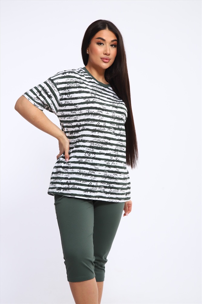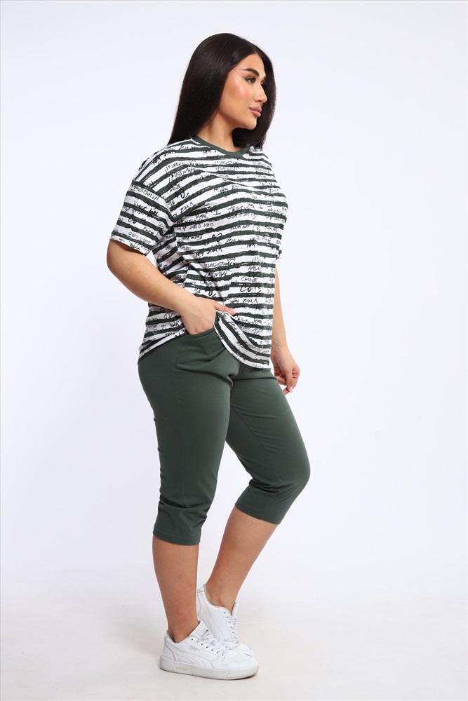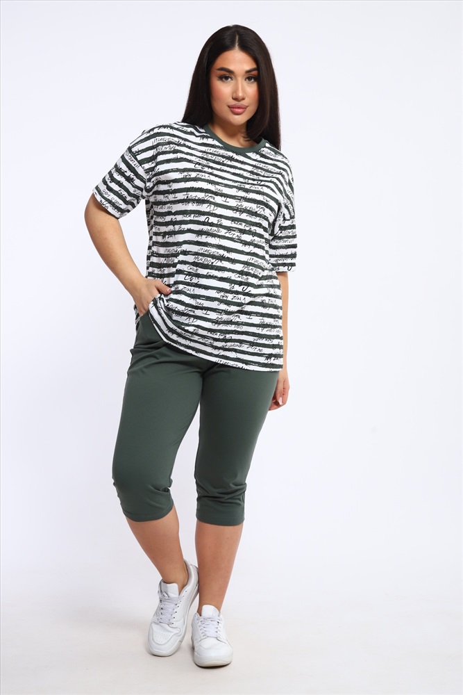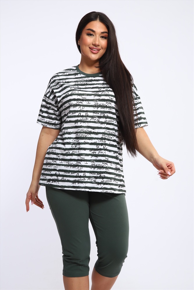 Состав: 100% хлопок Модель: Костюм женский КБЖЖ0049Д1 Тип товара: костюм с бриджами Материал: кулирка | кулирка Бренд: ZF FASHION Карман: без карманов Назначение: для дачи | для дома НДС: 5% Особенности: на резинке Посадка: средняя посадка Рукав: короткий рукав Сезонность: лето | осень | весна | зима Силуэт: прилегающий | свободный Стиль: домашний Воротник: без воротника Застежка: без застежки Костюм женский - туника с бриджами оригинальной и очень красивой летней расцветки. . Туника и бриджи выполнены из кулирки 100 % хлопок. Костюм очень легкий, отлично подойдёт для повседневной носки, дачи и прогулок. Таблица размеров и весафутболка