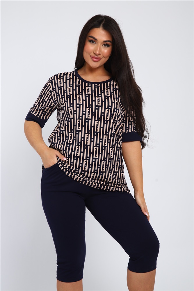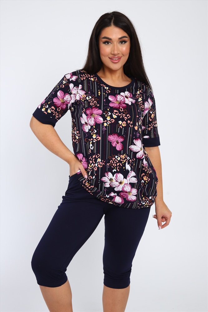 Состав: 100% хлопок Модель: Костюм женский КБЖЖ0050А Тип товара: костюм с бриджами Материал: кулирка | кулирка Бренд: ZF FASHION Карман: без карманов Назначение: для дома НДС: 5% Особенности: на резинке Посадка: средняя посадка Рисунок: абстракция | геометрия | цветы Рукав: короткий рукав Сезонность: лето | осень | весна | зима Силуэт: прилегающий | свободный Стиль: домашний Воротник: без воротника Застежка: без застежки Спешите приобрести наш новый комплект футболки и бриджей. Стильно, удобно, супер модно и смотрится просто бомбически! Вы будете выглядеть на сто процентов модно и современно, плотные прилегающие бриджи и свободная футболка - идеальное сочетание для любого типа фигуры! Не упустите свой шанс заявить о себе и своем особом стиле с нашим новым комплектом футболки и бриджей. Таблица размеров и весафутболка
