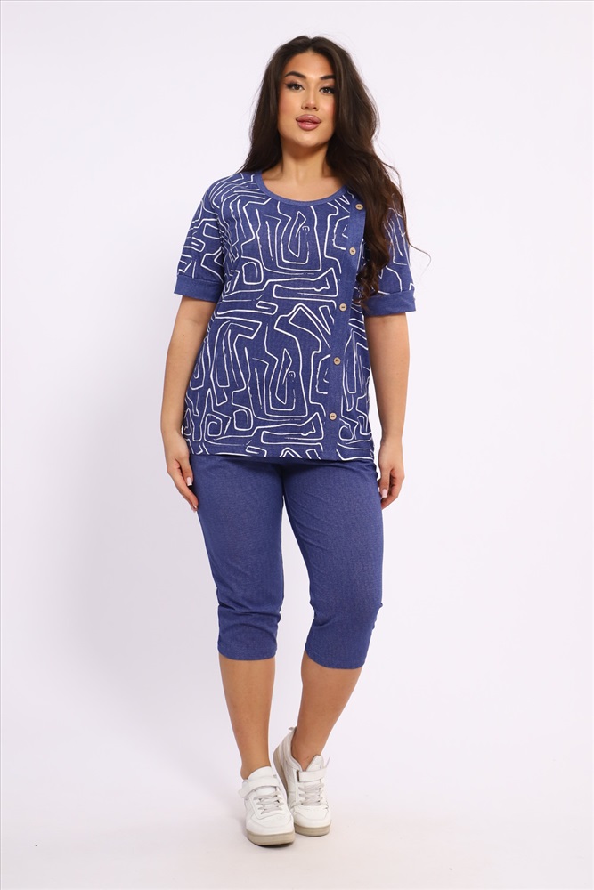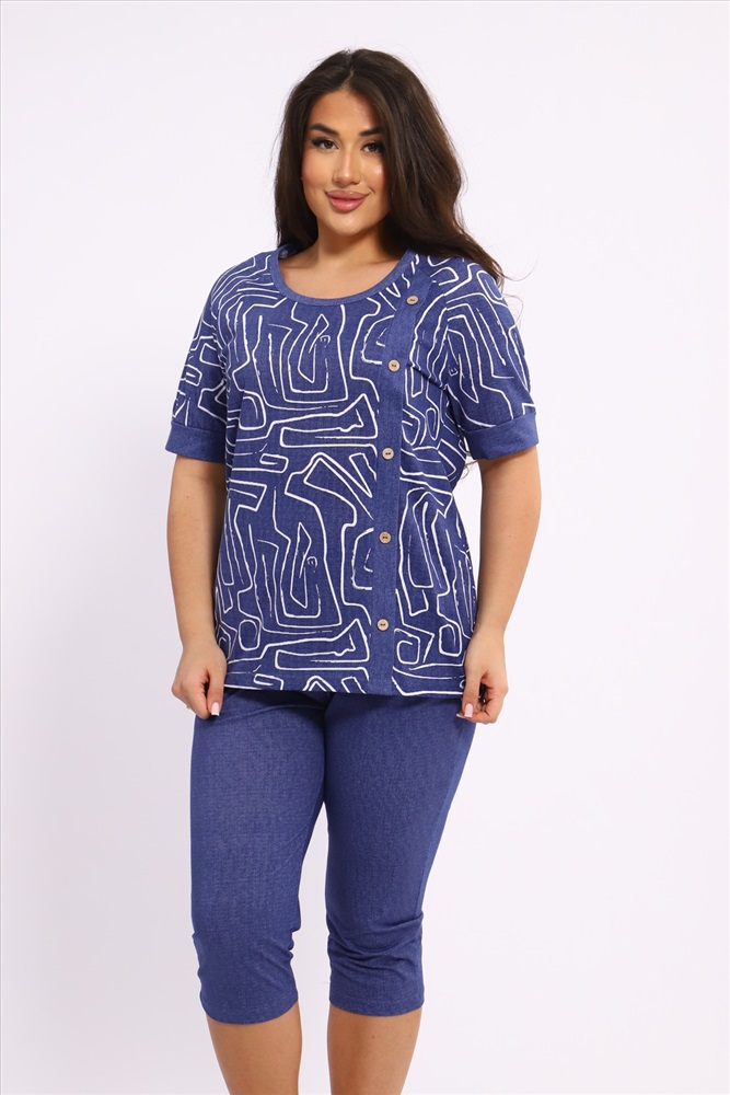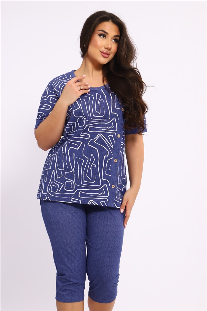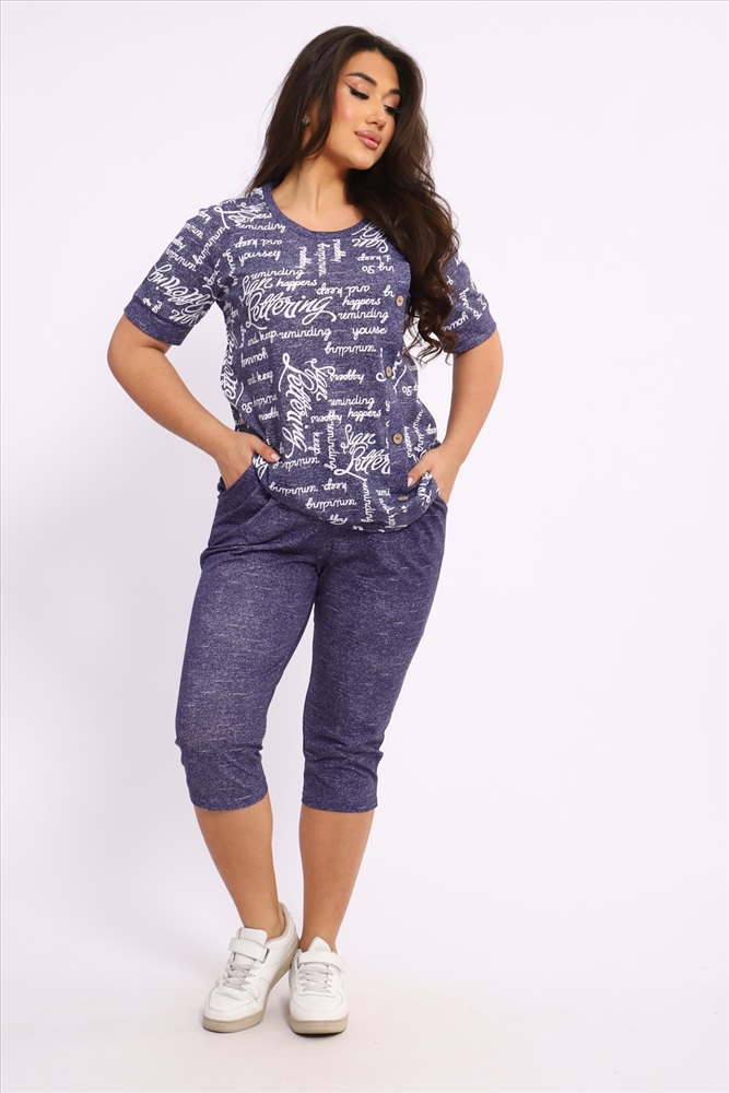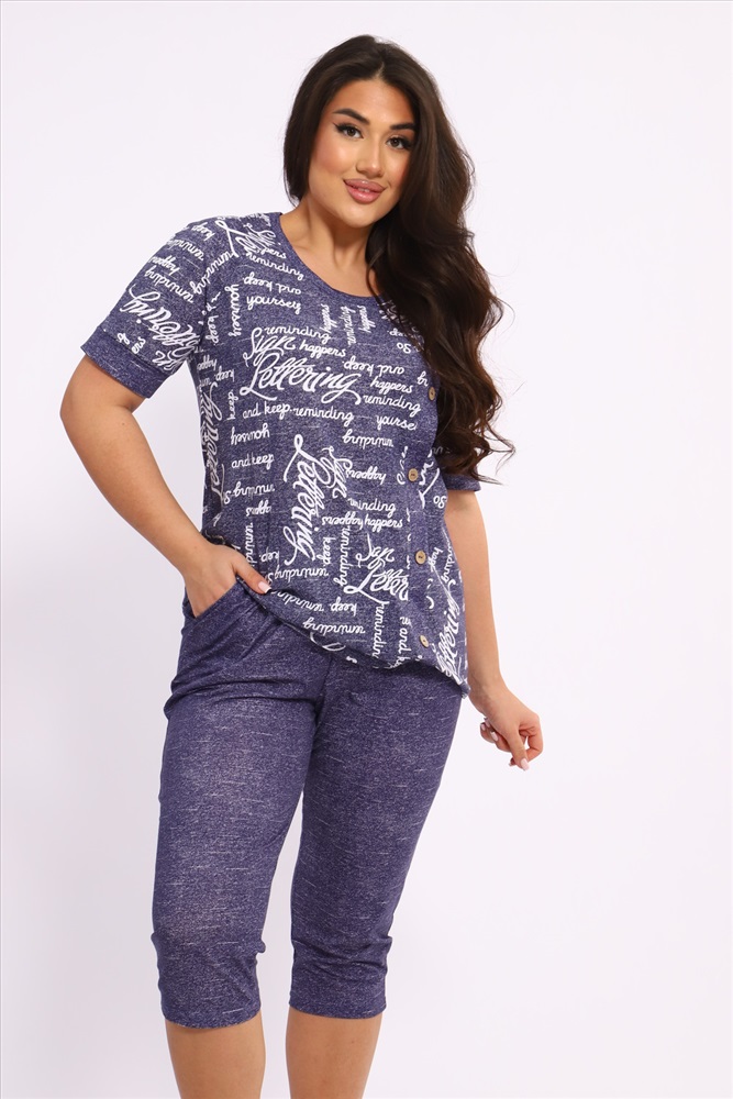 Состав: 100%хлопок Модель: Костюм женский КБЖЖ0053В Тип товара: костюм с бриджами Материал: кулирка | кулирка Бренд: ZF FASHION Карман: боковые Назначение: для дома НДС: 5% Особенности: на резинке Отделка: с карманами Посадка: высокая посадка Рисунок: надпись Рукав: короткий рукав Сезонность: лето | осень | весна | зима Силуэт: свободный Стиль: домашний Воротник: без воротника Застежка: без застежки Костюм женский выполнен из трикотажного полотна кулирка. Костюм состоит из футболки и бридж. Футболка свободного силуэта. Бриджи свободного кроя чуть ниже колен. Таблица размеров и весакофта